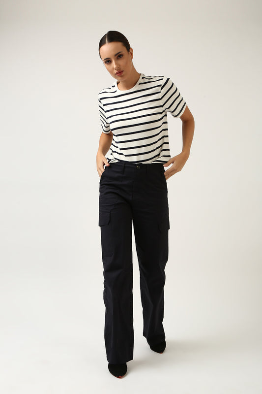 Super Soft-Boxy Tee-Navy & White Stripe