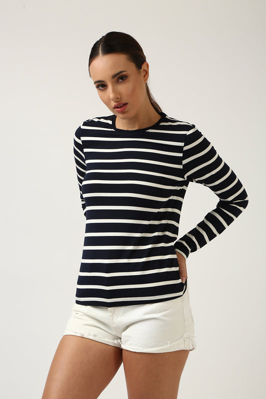 Super Soft-Long Sleeve Tee-Navy & White Stripe