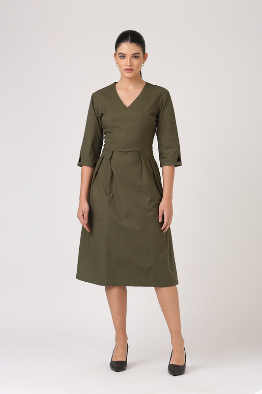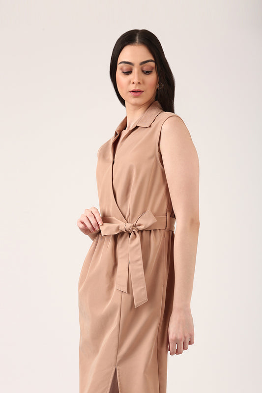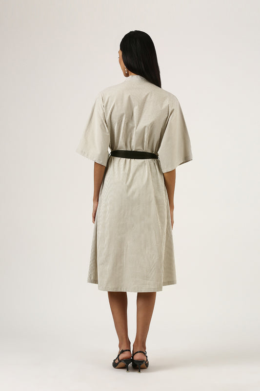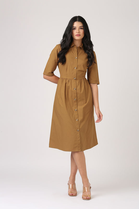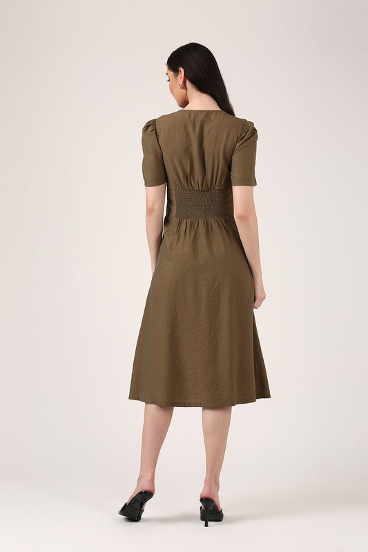 Taupe Button-Down Midi Dress with Waist Tie-The Everyday Edit