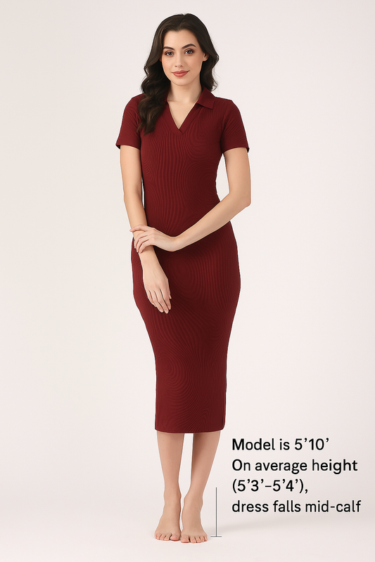 Soft Cotton Rib Contouring Wine Bodycon Dress
