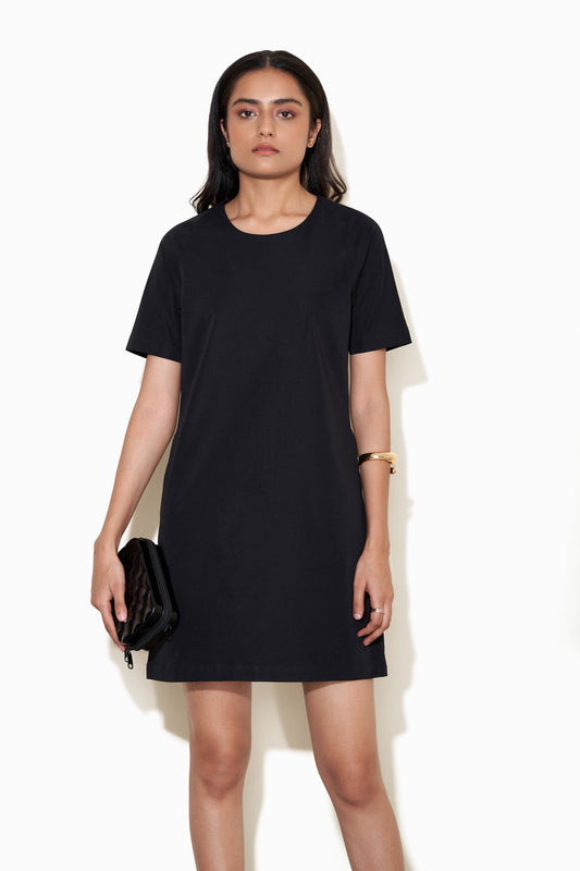 Soft Cotton Rib Contouring Black Bodycon Dress
