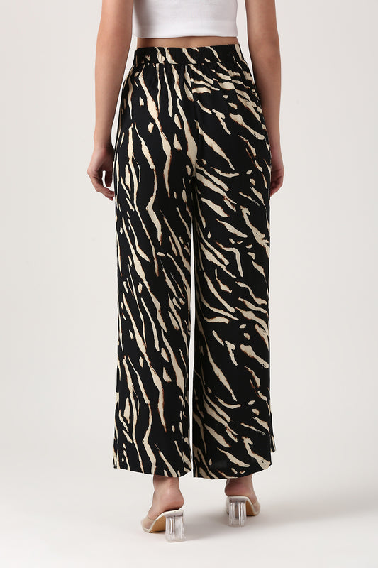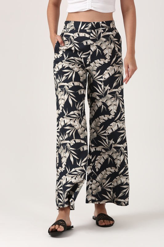 Midnight Ikat Viscose Flare Pant - Casual Wide Leg Trousers