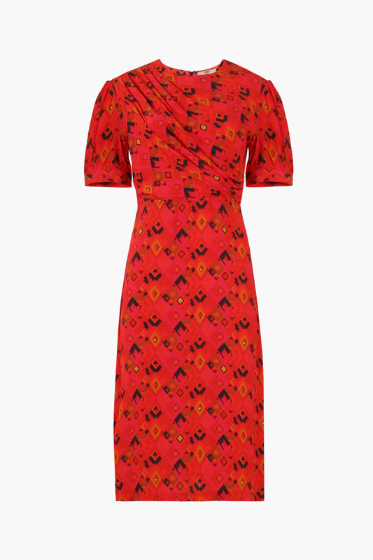 Printed Ruched Midi Dress