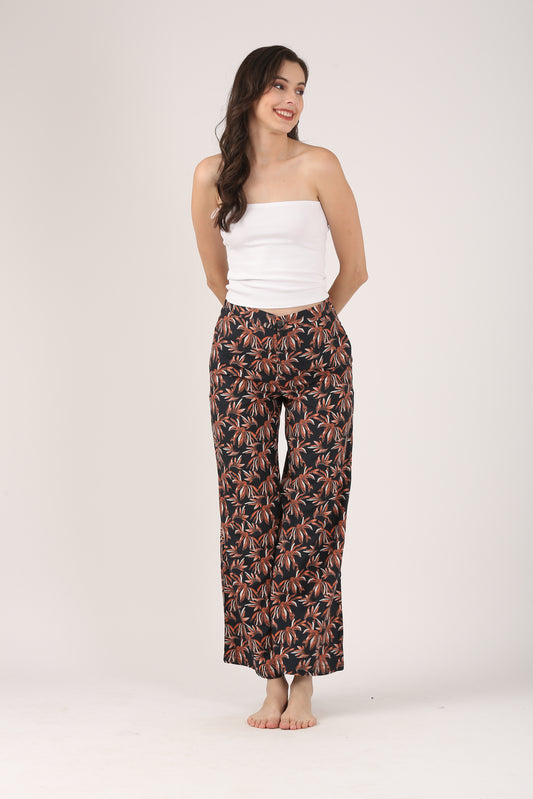Boho Resort Flare Viscose Pant – Casual Wide Leg Trousers