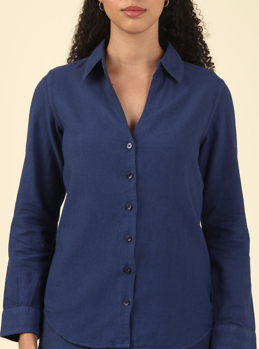 Linen Shirt Classic Fit - Midnight Blue