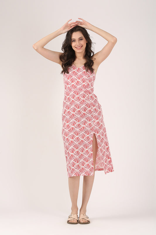 Red Strappy Summer Dress with Slit