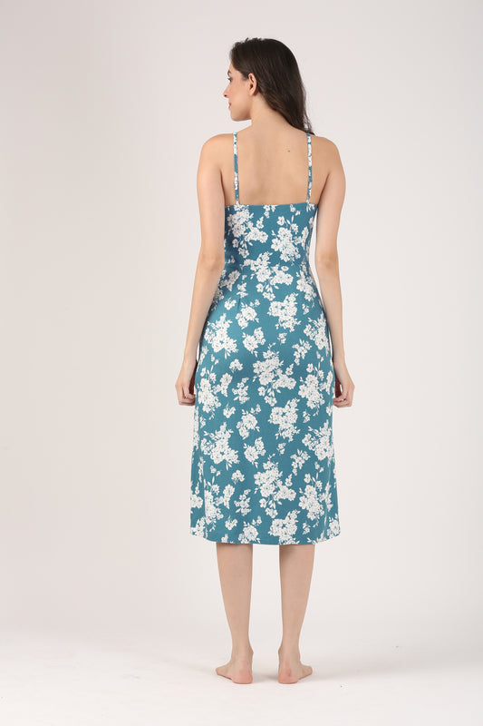 Teal Floral Strappy Dress with Slit – Summer Party Edit