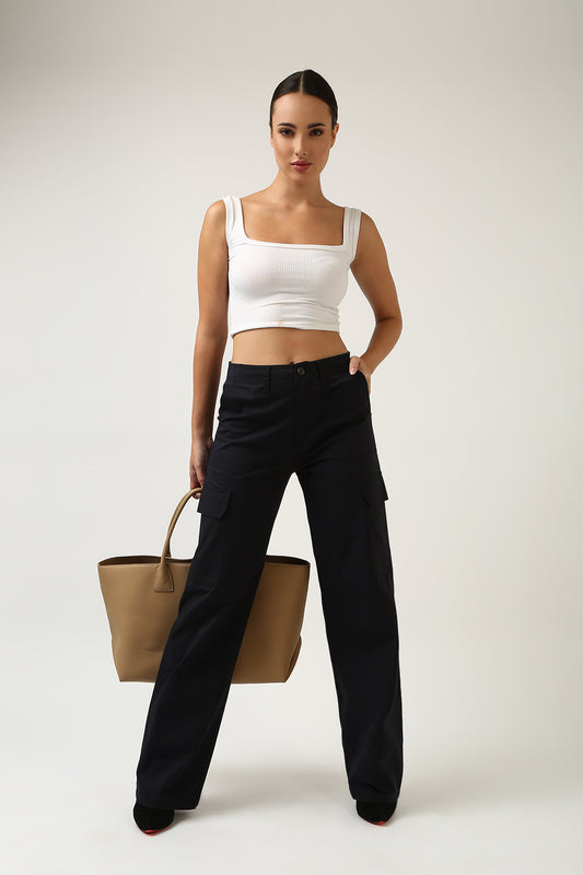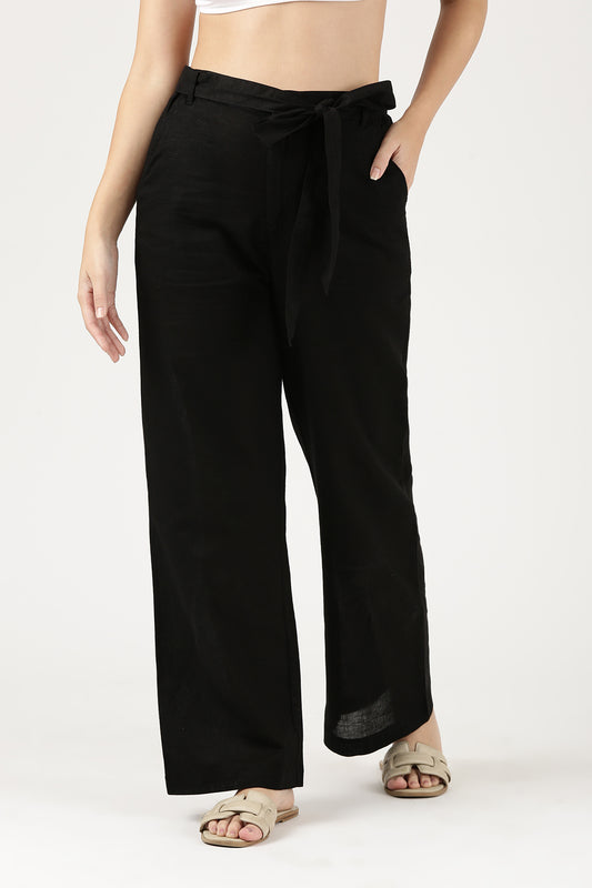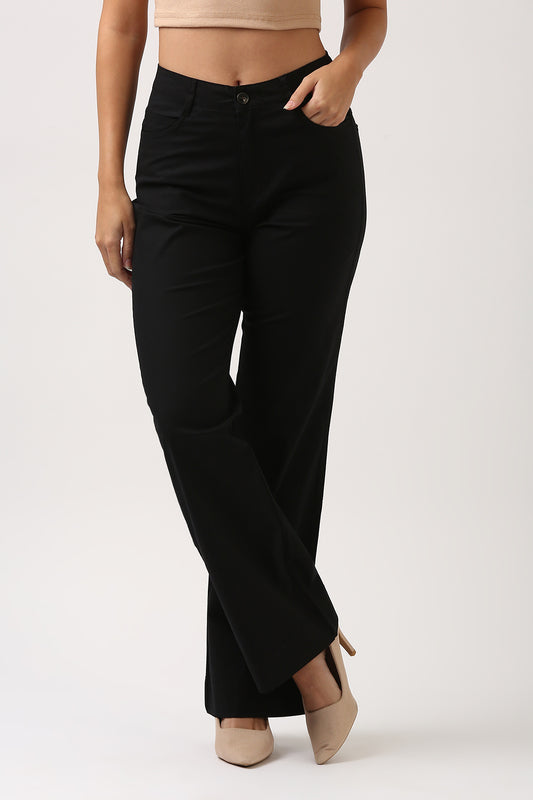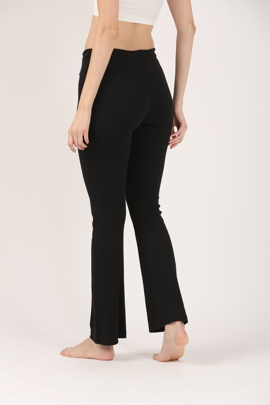 Black & Grey Cotton Flare Pant – Casual Wide Leg Trousers