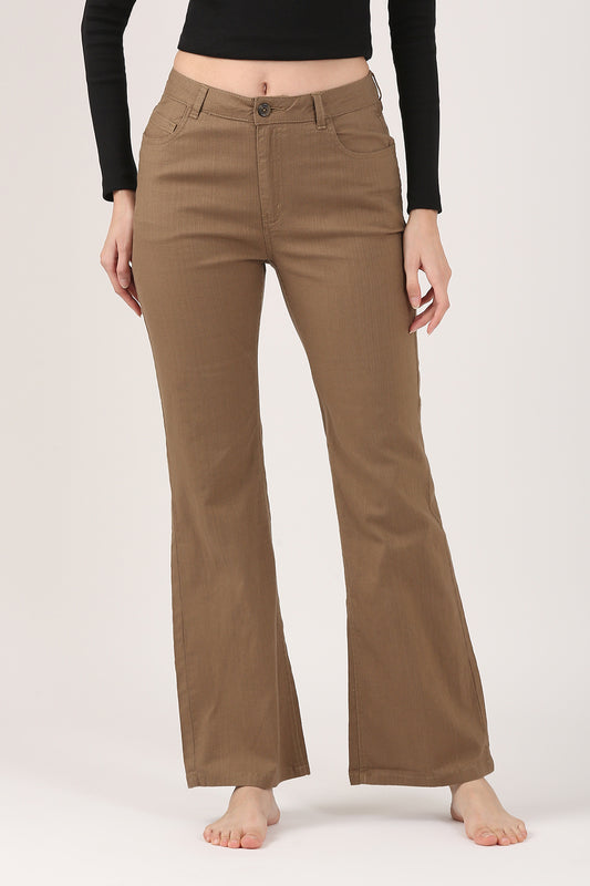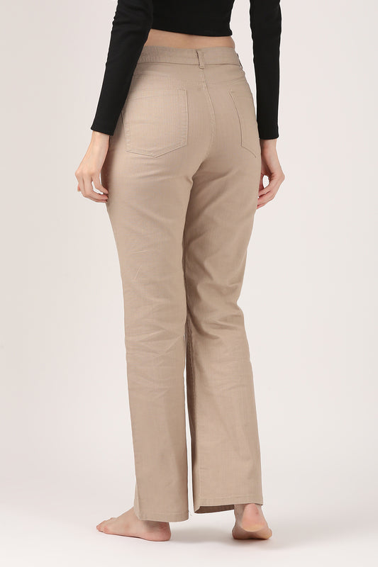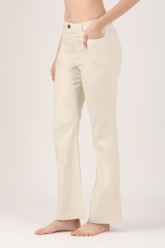 Cream & Rust Viscose Flare Pant - Casual Wide Leg Trousers