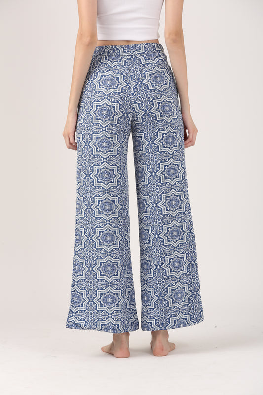 Midnight Ikat Viscose Flare Pant - Casual Wide Leg Trousers