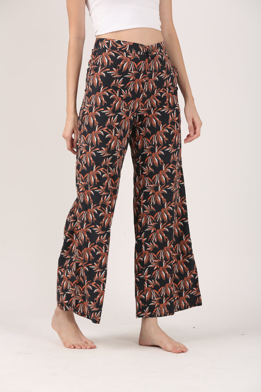 Boho Resort Flare Viscose Pant – Casual Wide Leg Trousers