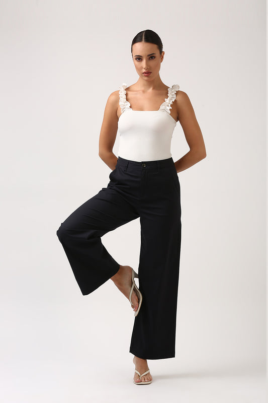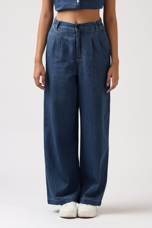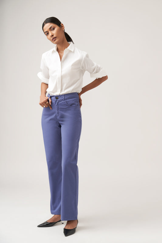 Santorini Blue Flare Viscose Pant – Casual Wide Leg Trousers