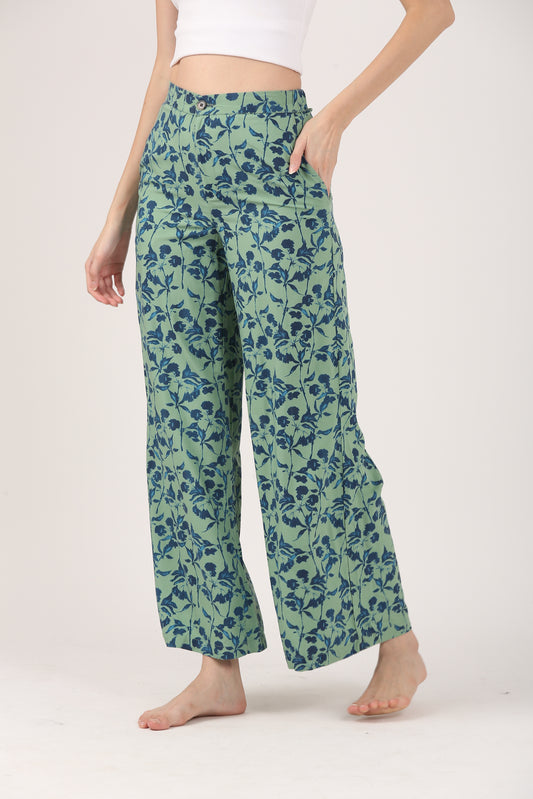 Sea Green Flare Viscose Pant - Casual Wide Leg Trousers