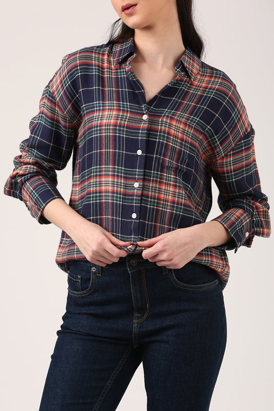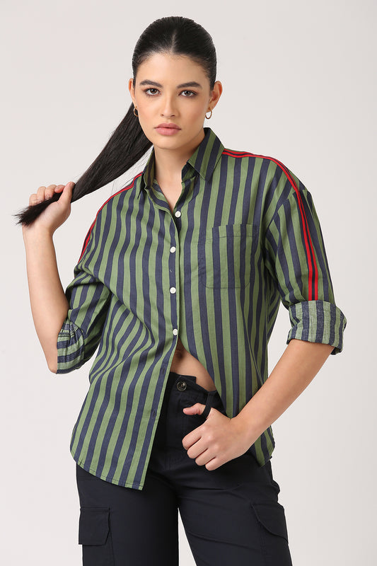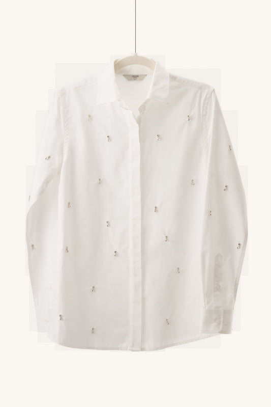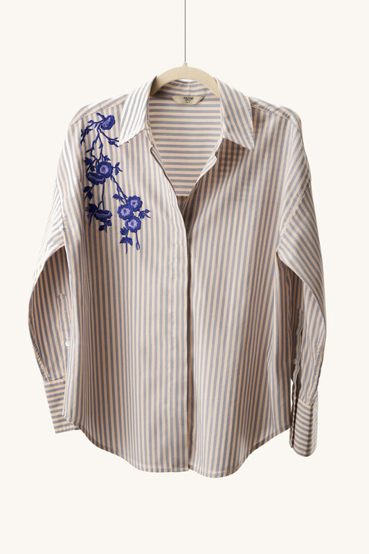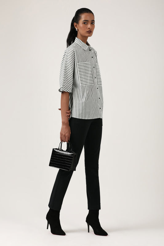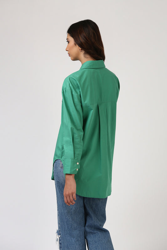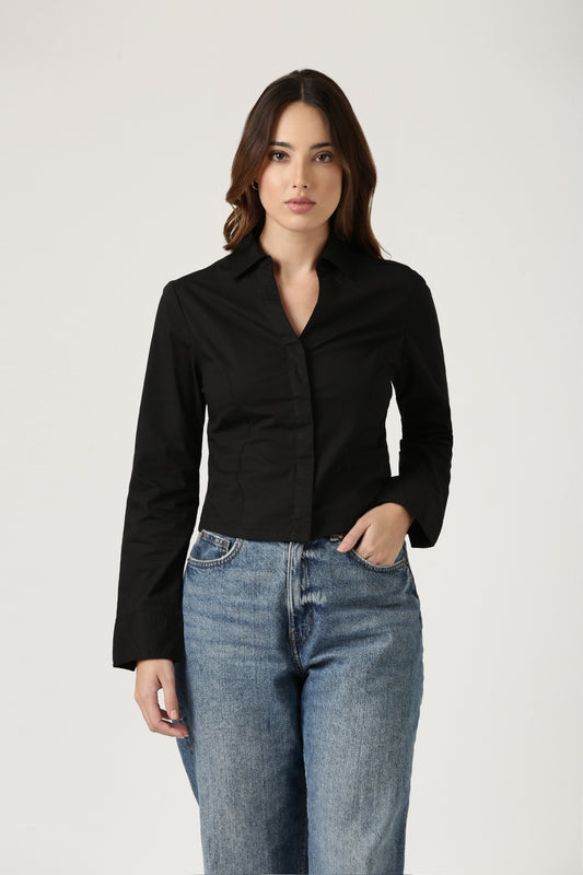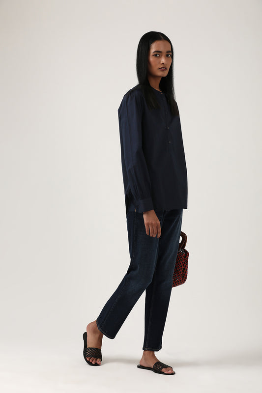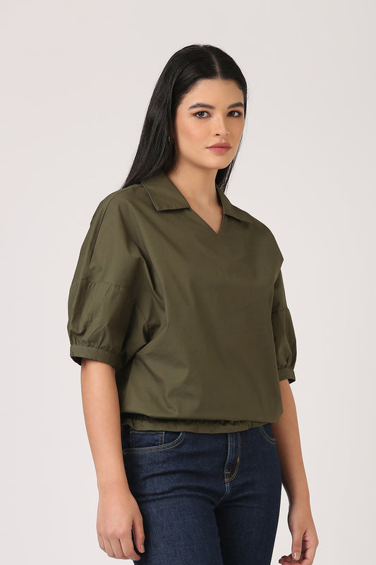 Powder Blue Relaxed-Fit Shirt For Women With Bishop Sleeves