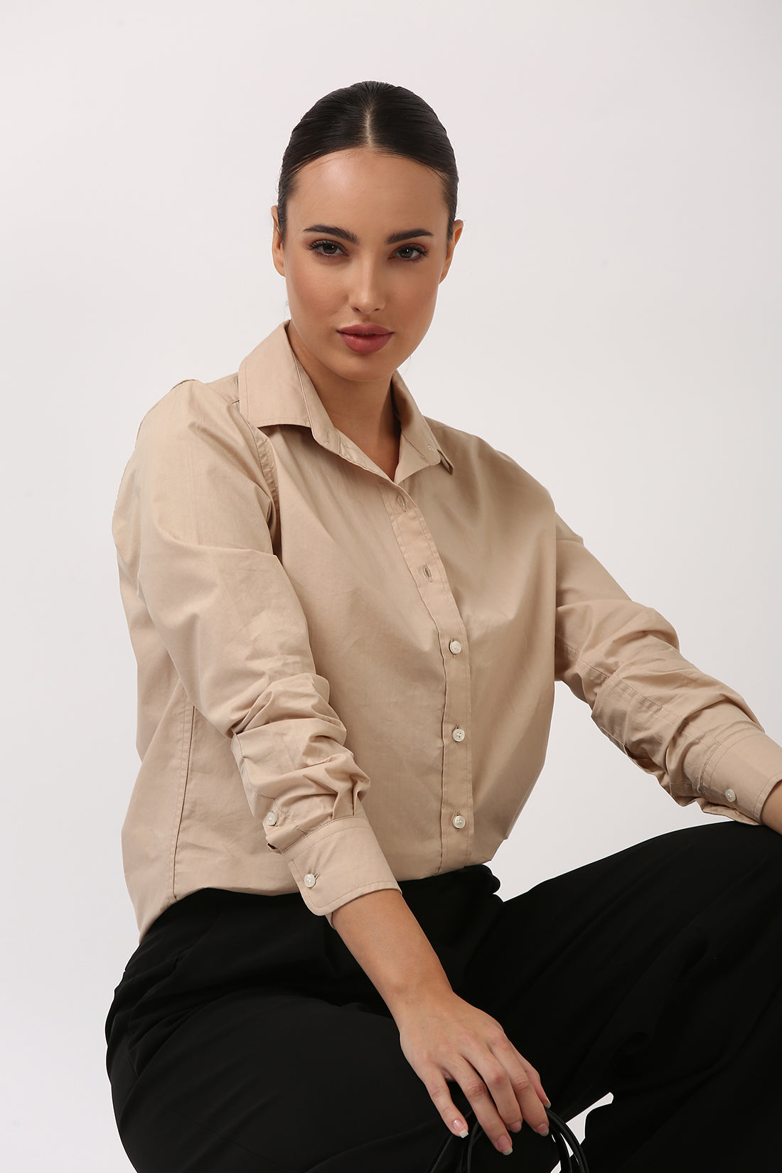 A chic beige-brown shirt in signature Jolene quality that blends natural tones with effortless sophistication