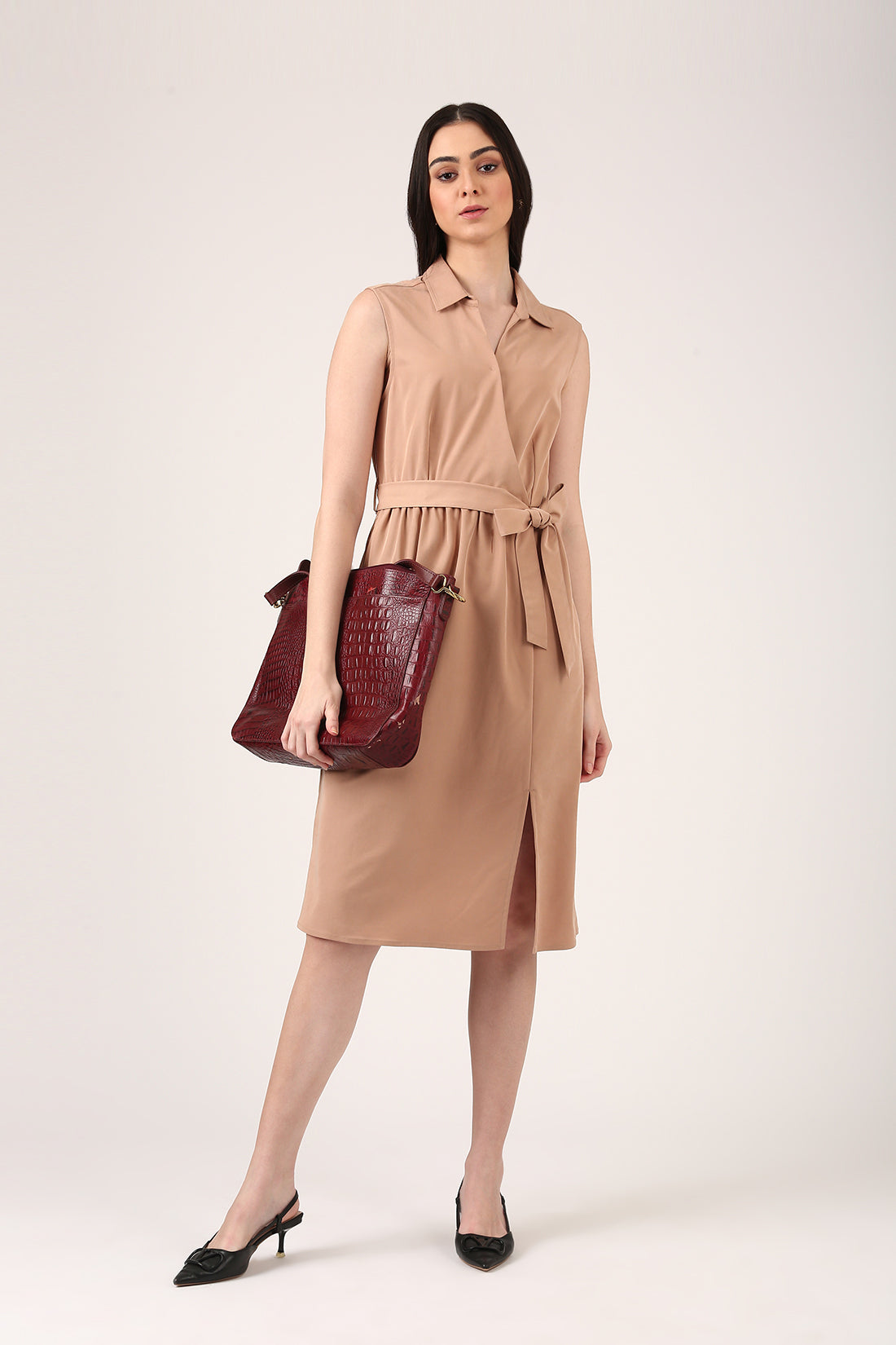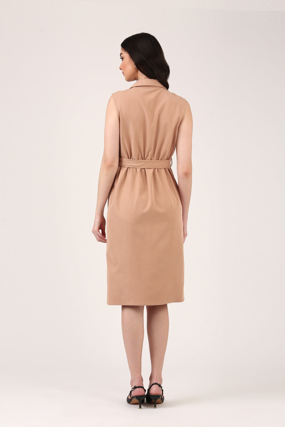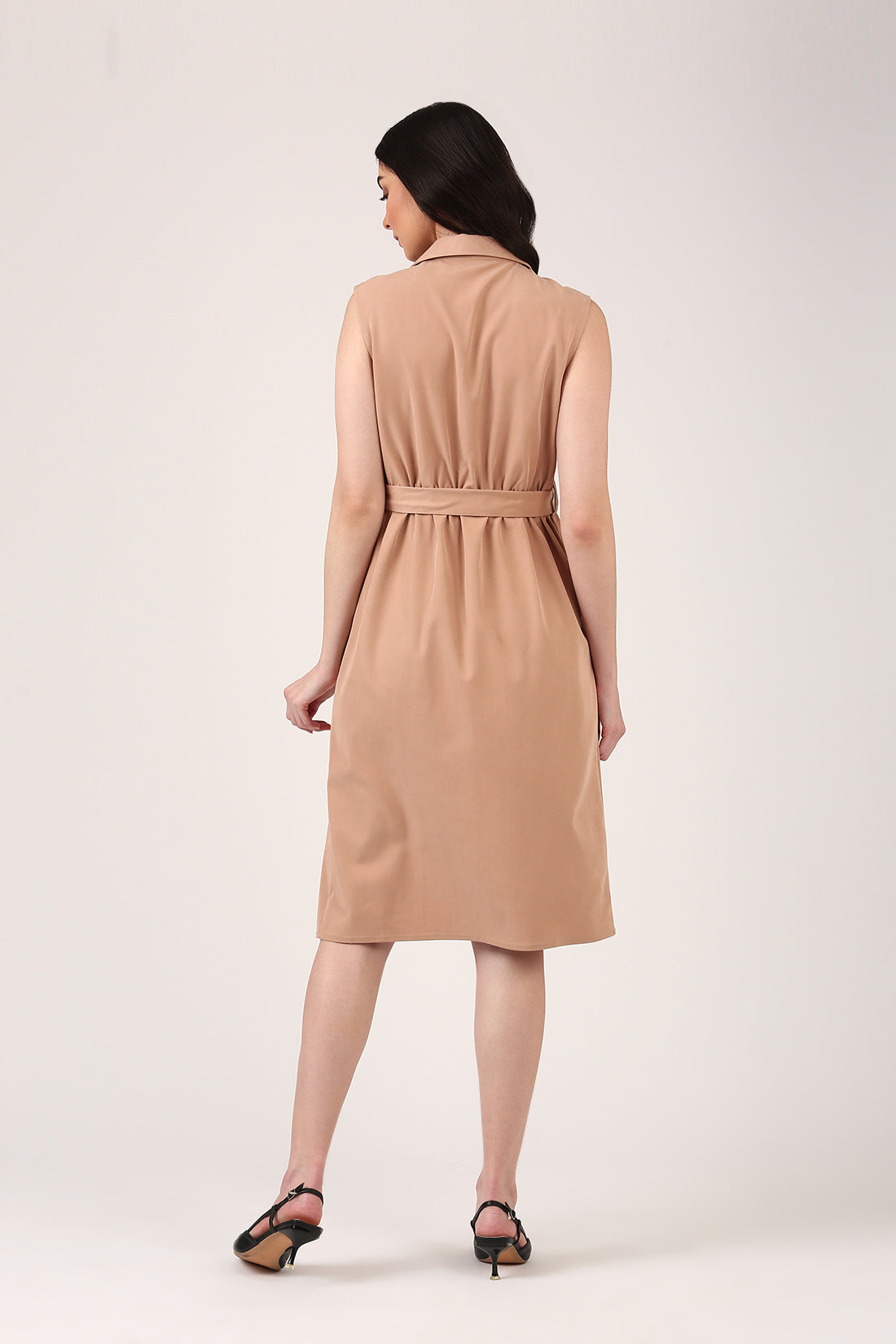 - Sleeveless Midi Over Lapping Dress With Collar