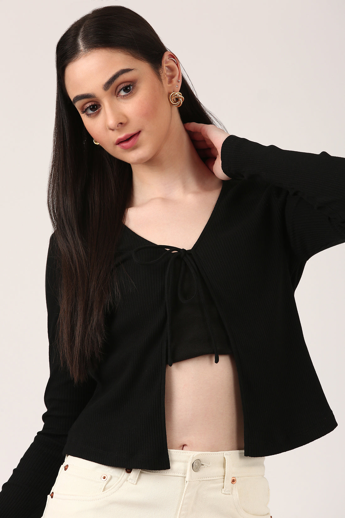 - Fitted front open cardigan top