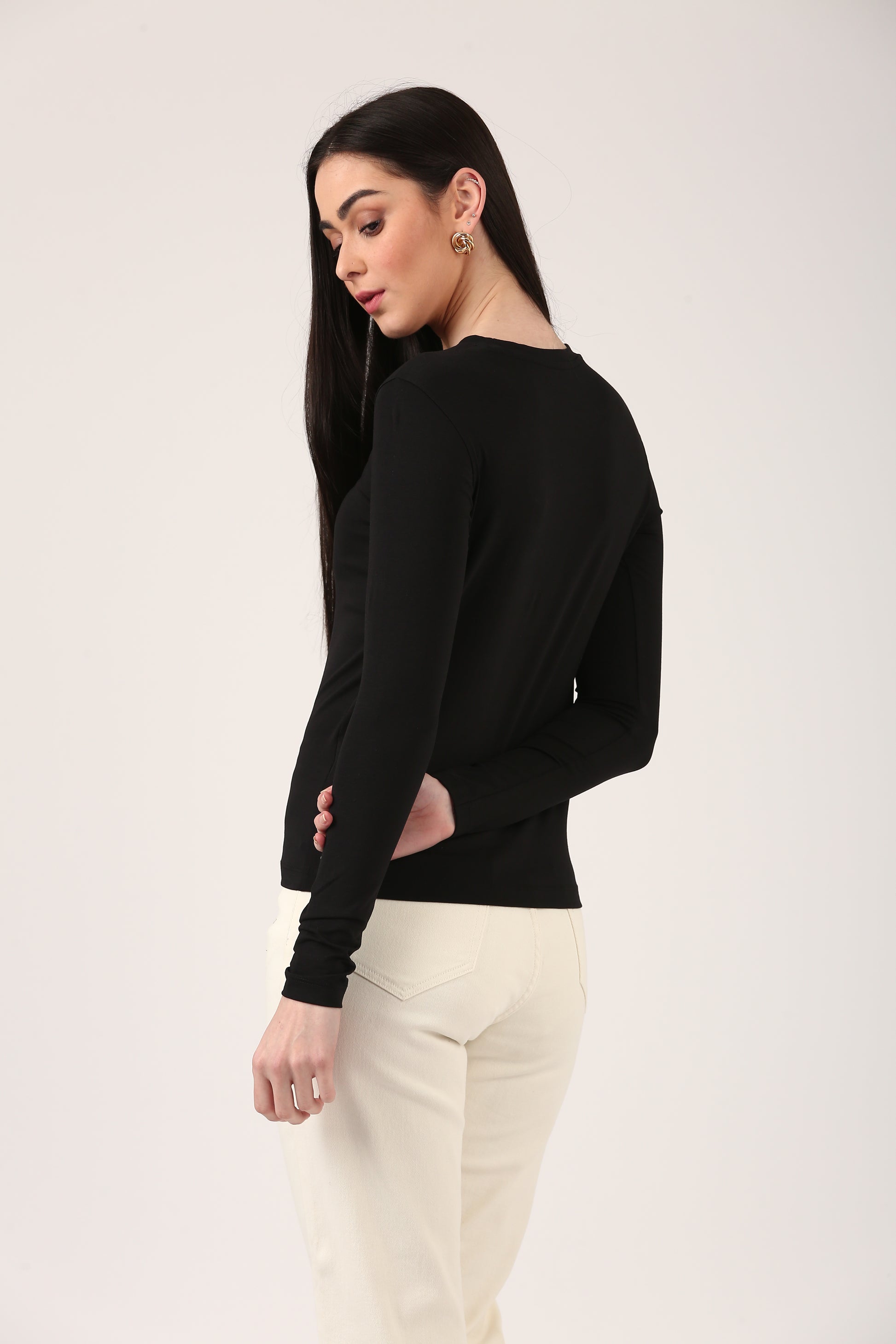 A minimalist’s dream with maximum style. Our luxe Long Sleeve Top is crafted from premium cotton spandex, offering that soft, breathable feel with just the right amount of stretch. It's perfect for layering or wearing solo. Whether you're dressing it up with tailored trousers or pairing it with denim, this versatile top is your go-to for effortless chic.