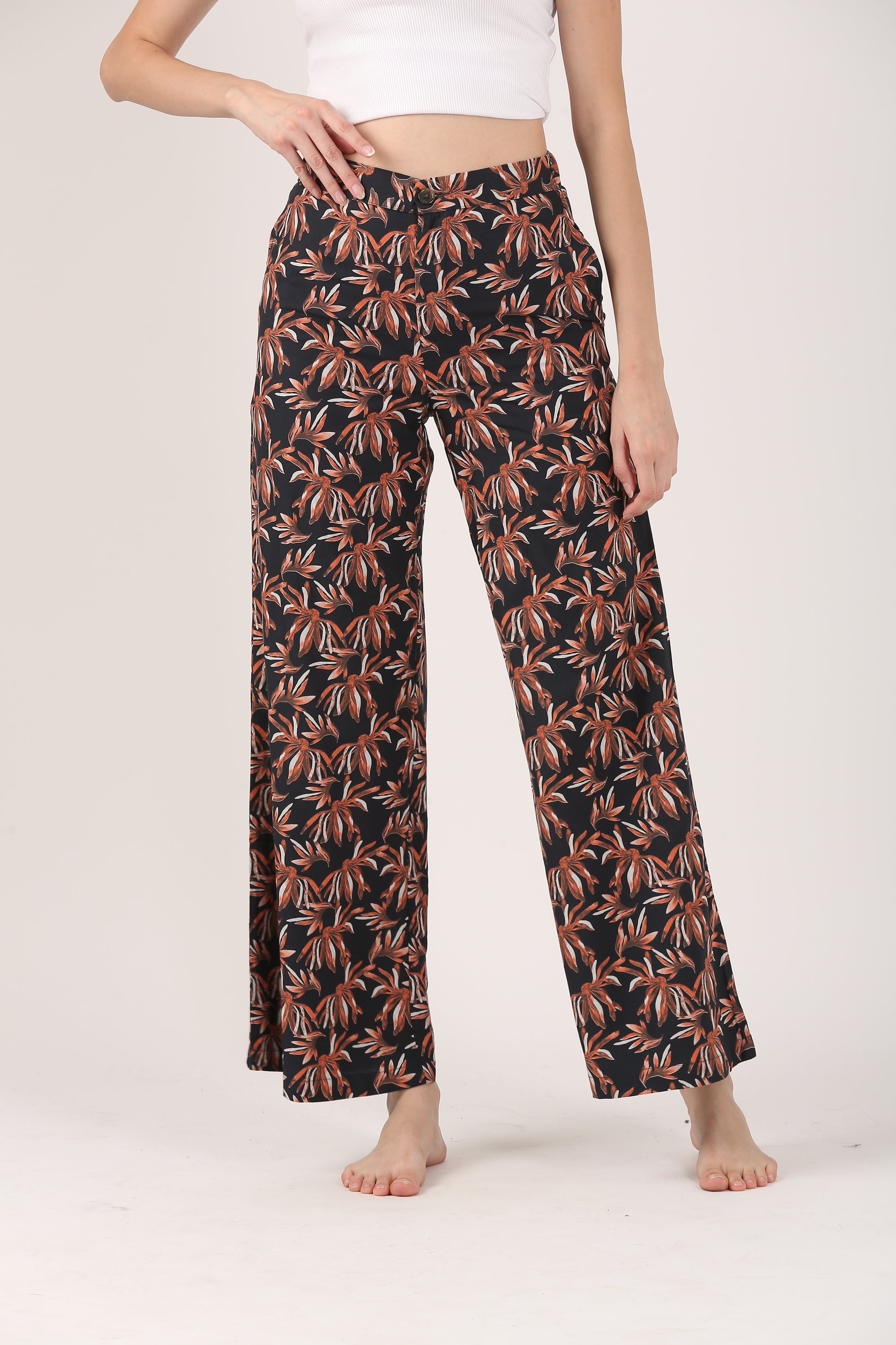 Boho Resort Flare Viscose Pant – Casual Wide Leg Trousers