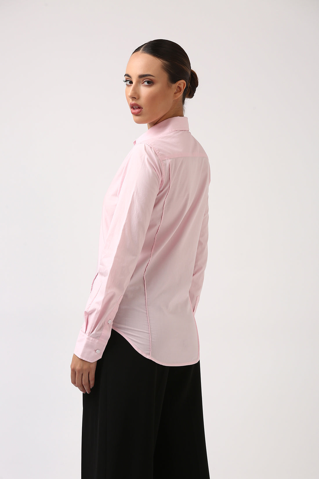 A crisp, blush pink poplin shirt with delicate pintuck detailing for an effortlessly polished look