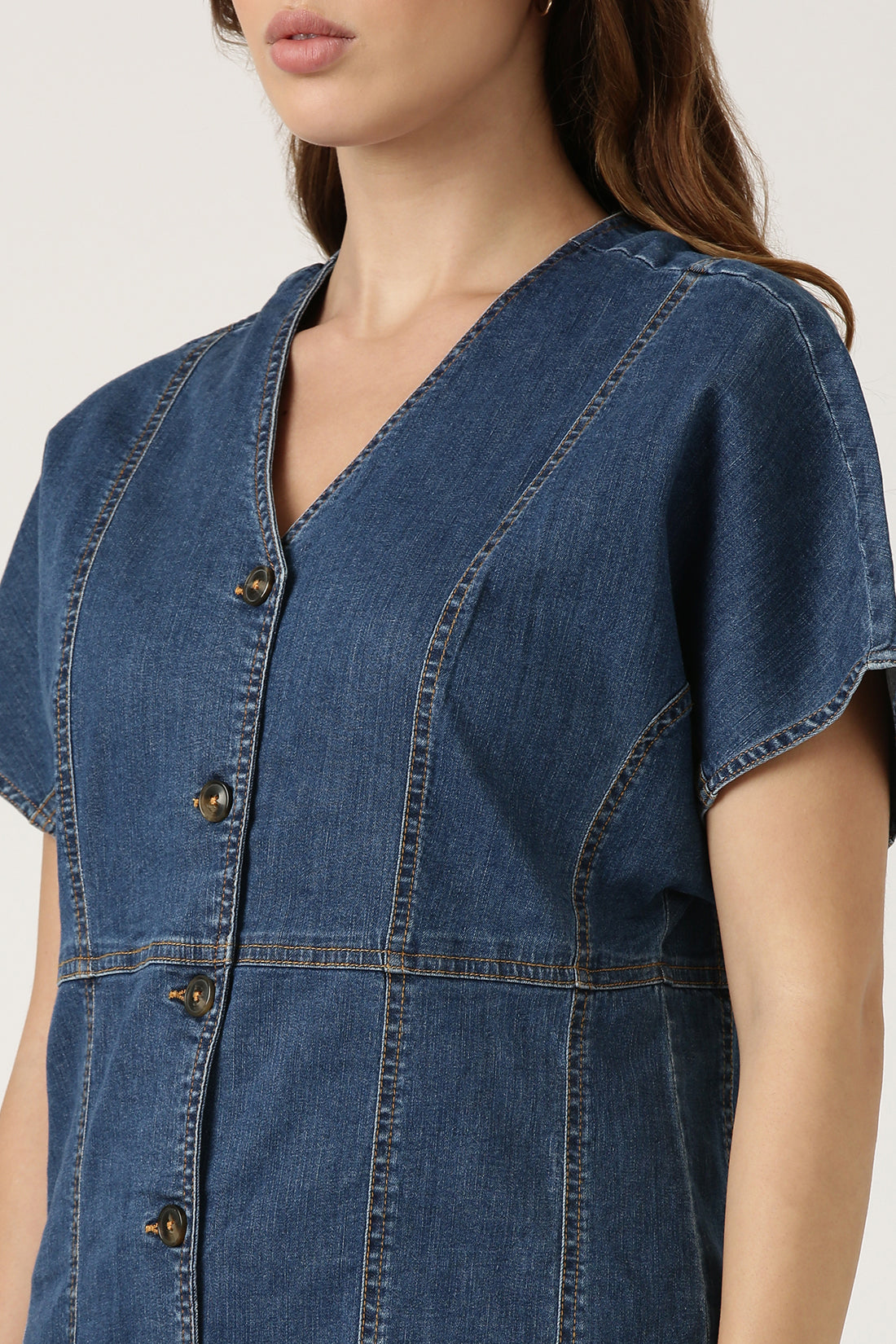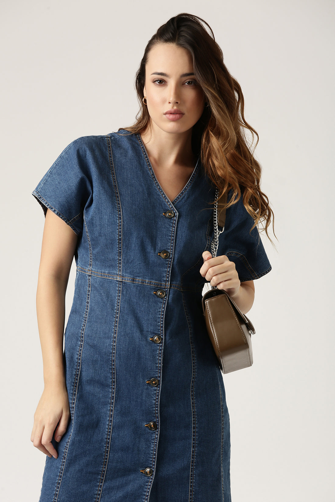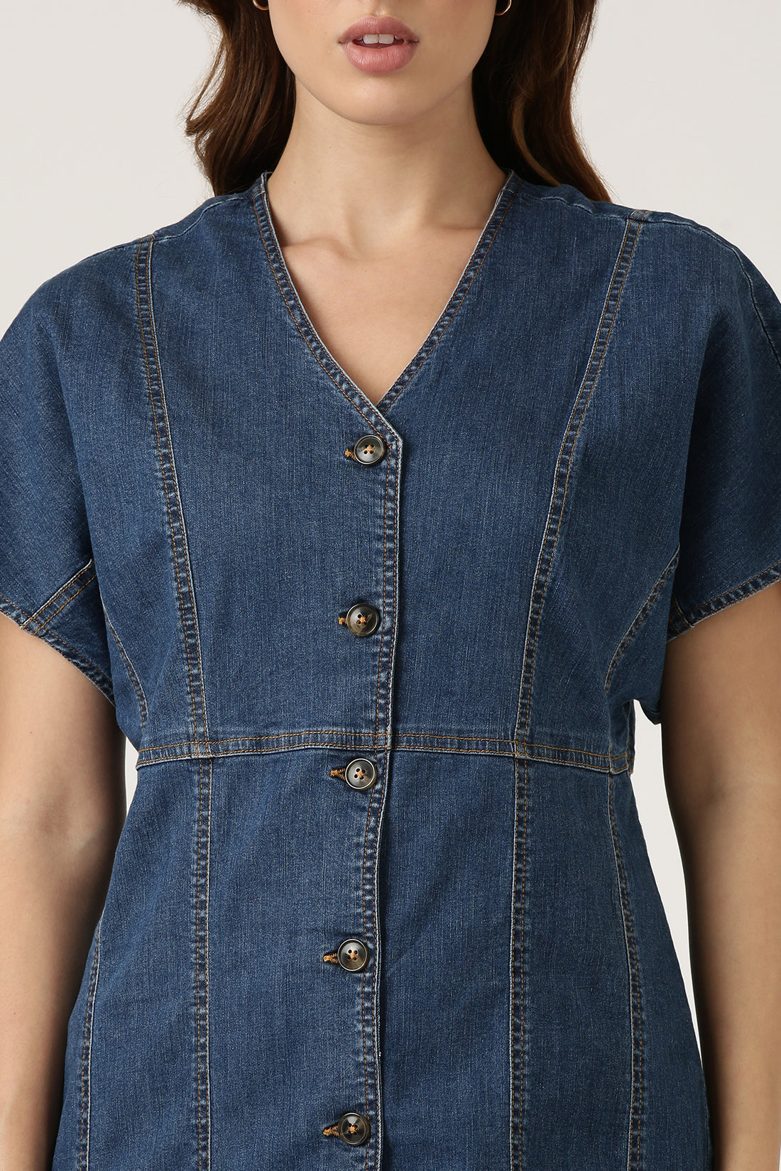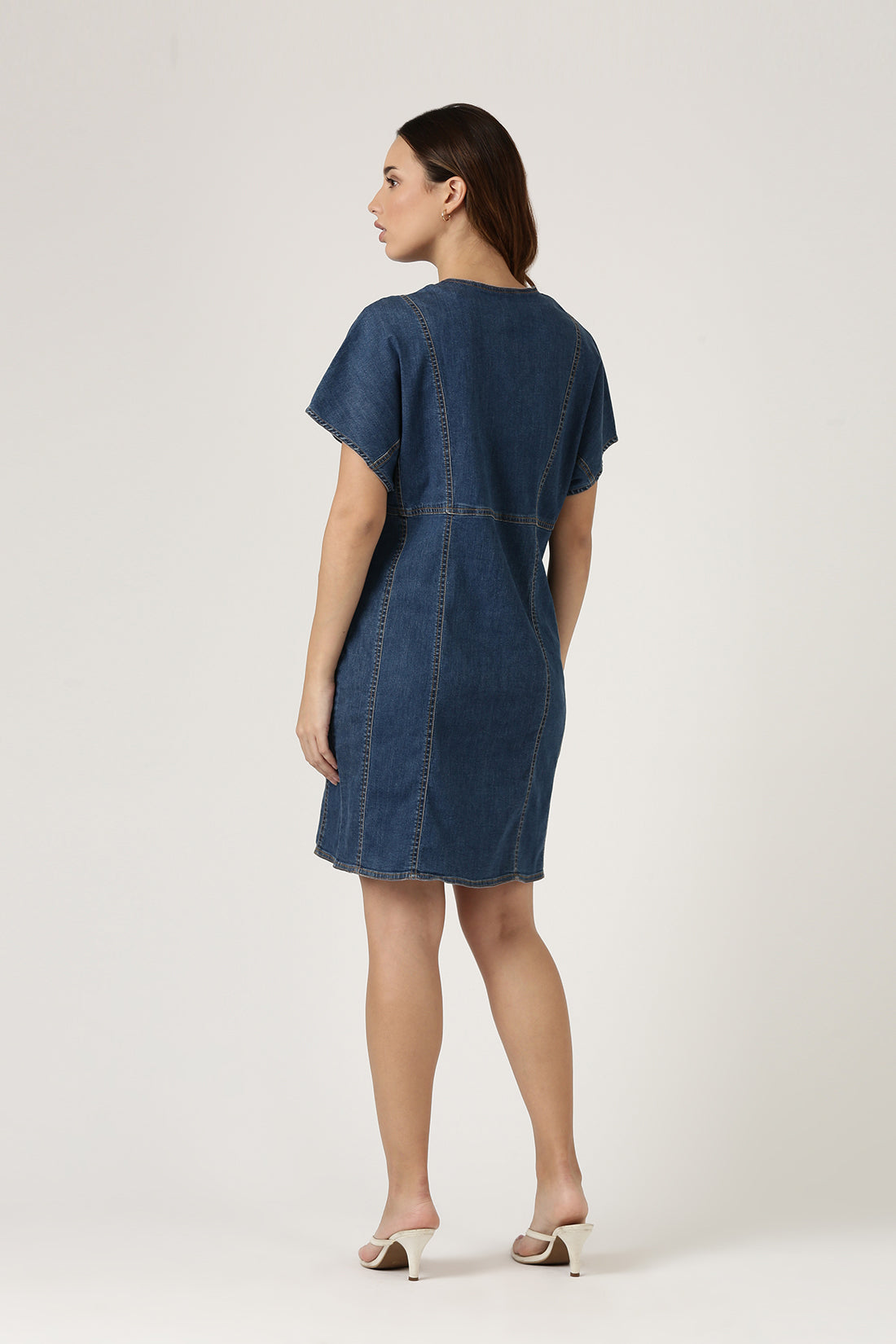 Opt for a size up if you a prefer a relaxed silhouette. This denim dress featuring contrast stitch effortlessly blends casual vibes with an effortless charm.