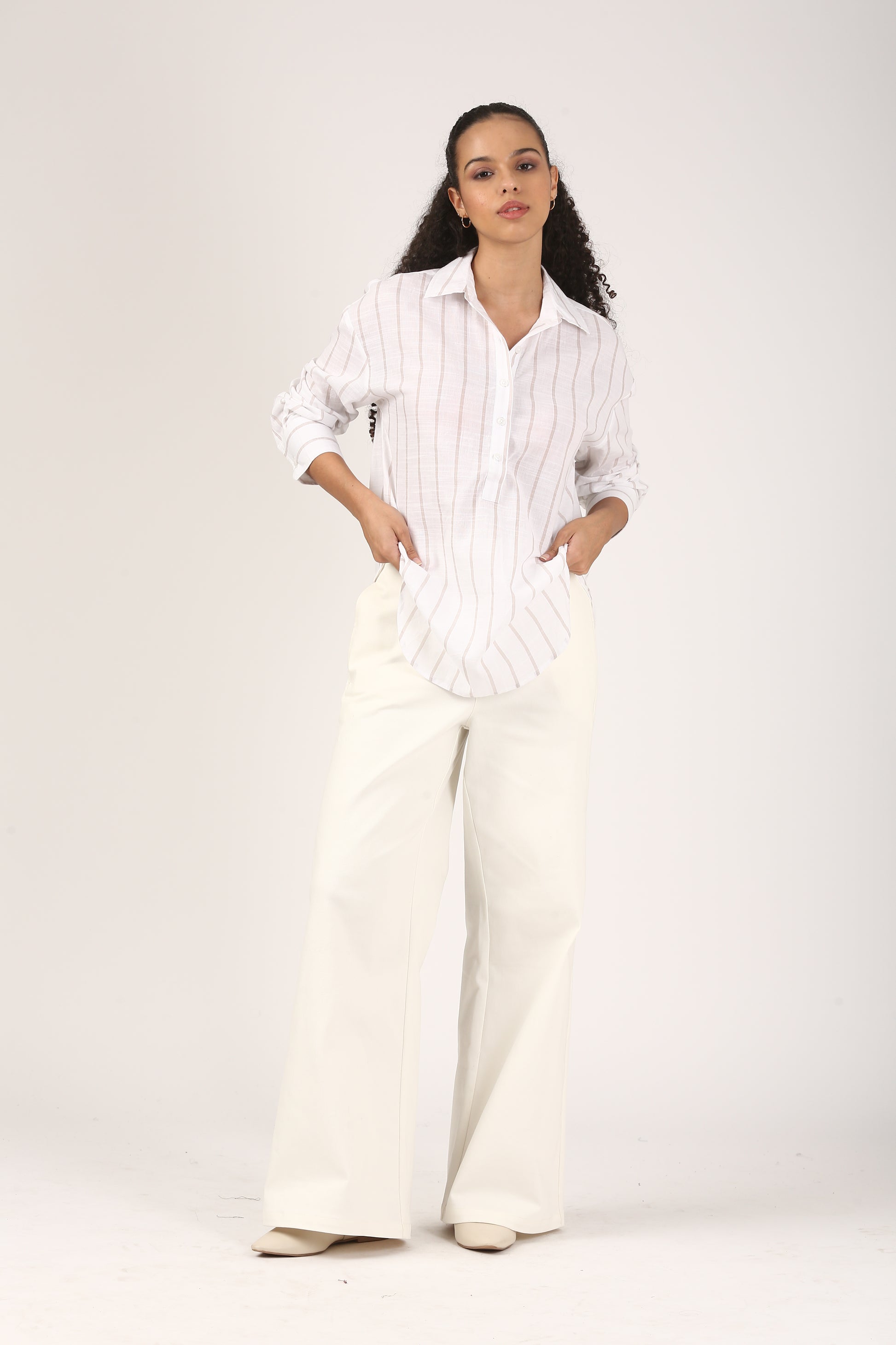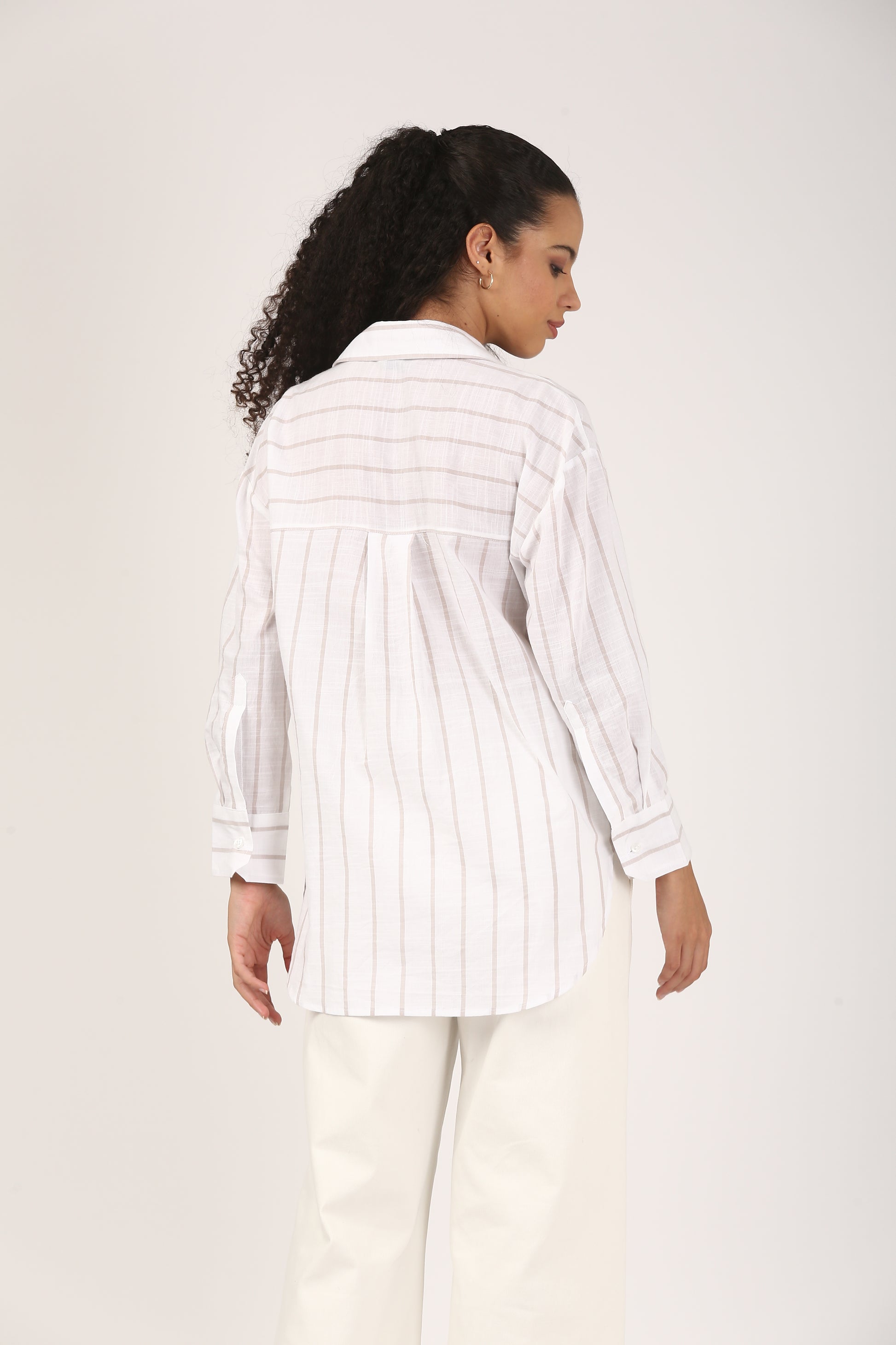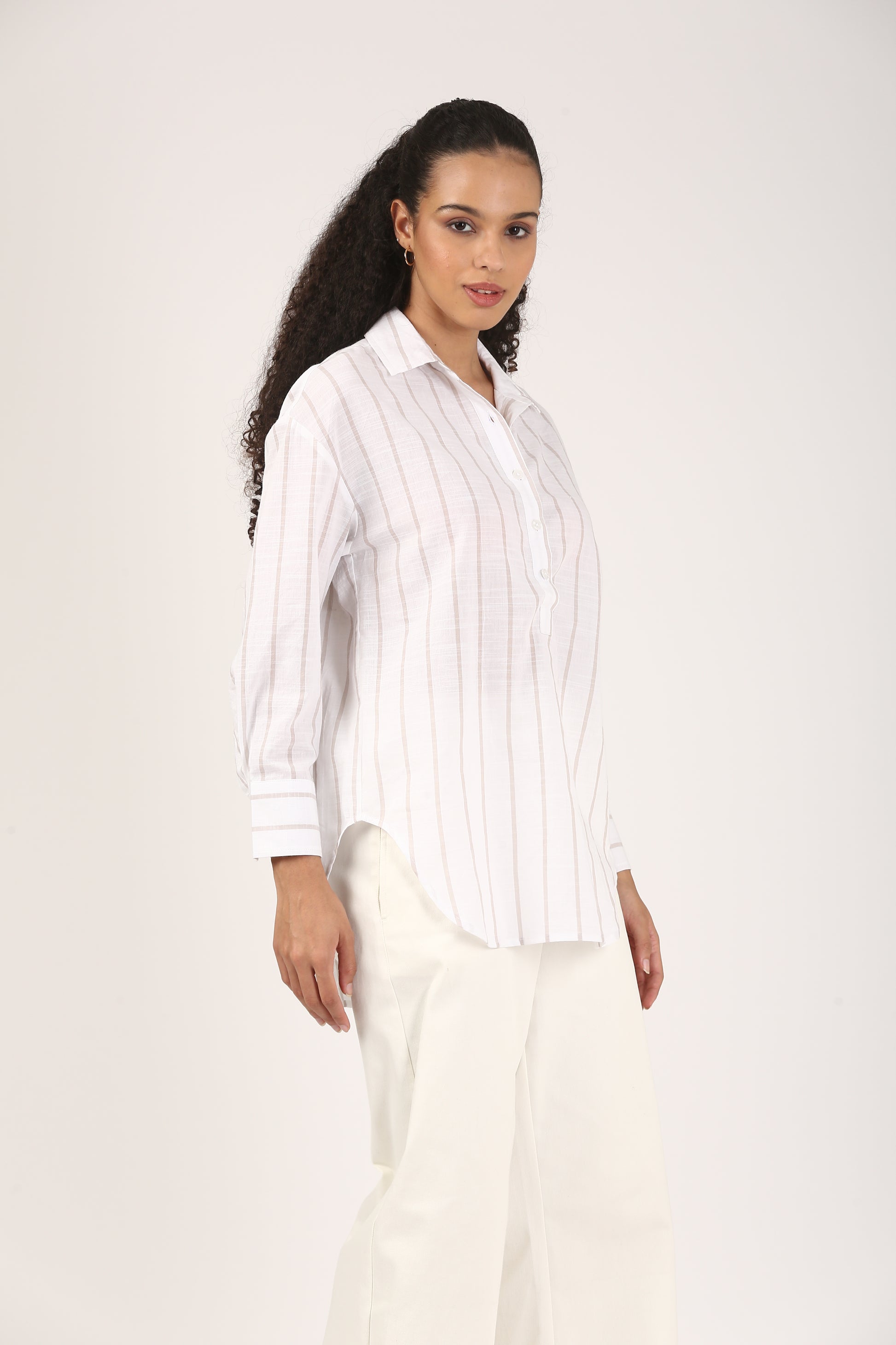 Ivory Sand Stripe Cotton Popover Shirt