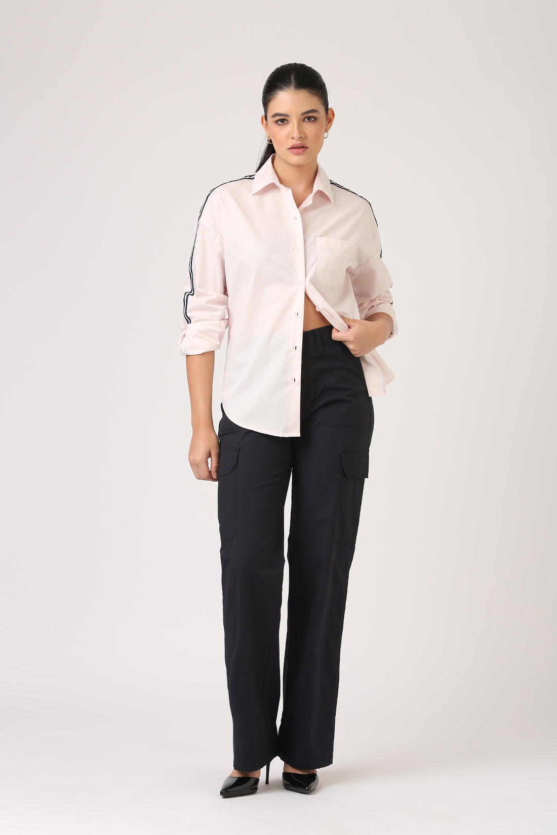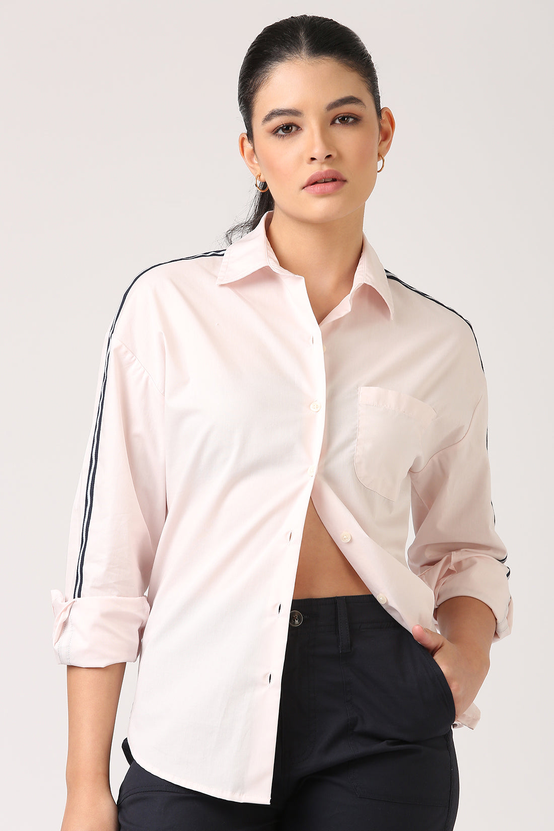 Pink Cotton Side Stripe Shirt