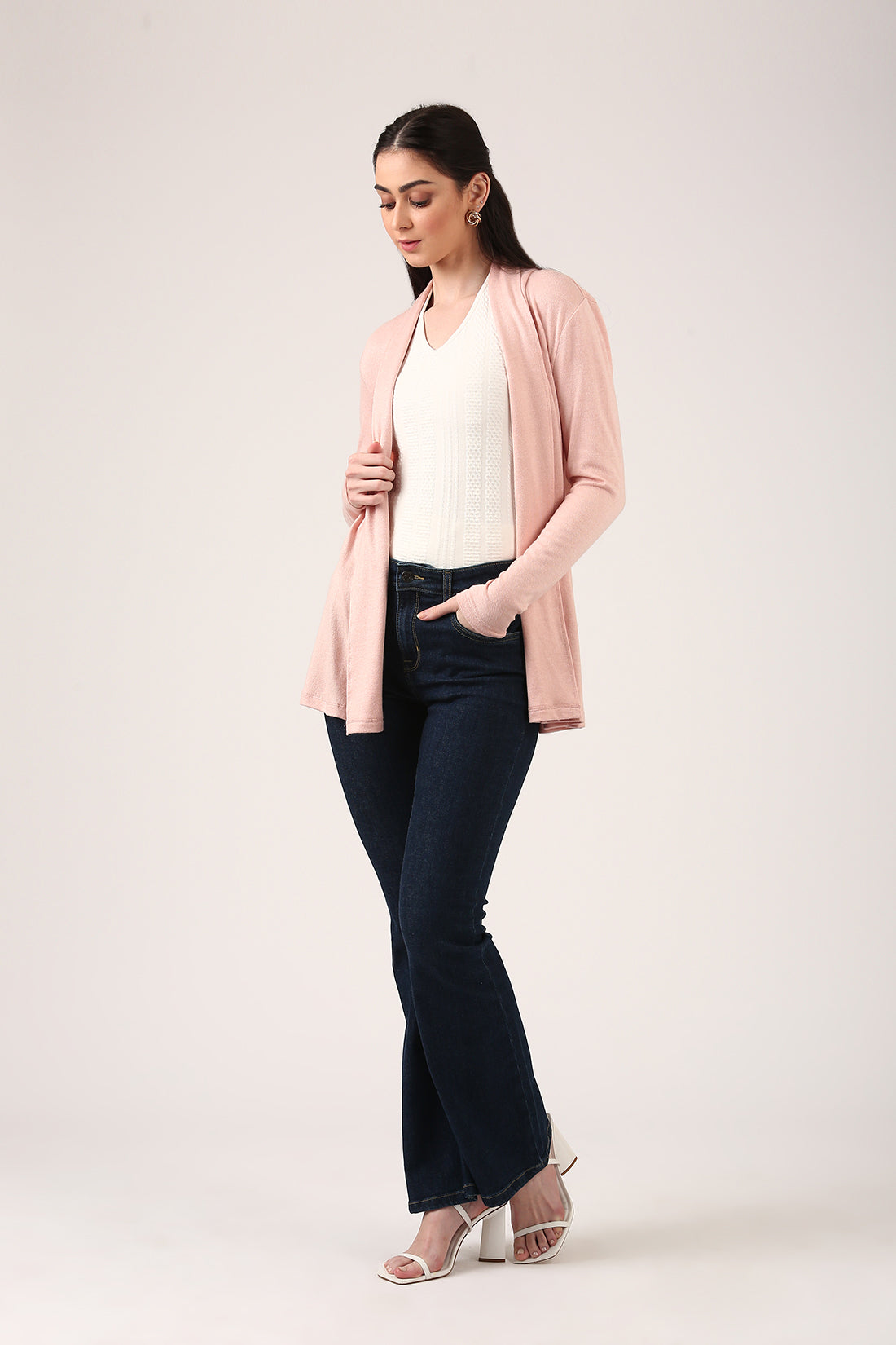 Light Pink Women’s Shrug – Full Sleeve Open Front Cardigan for Layering