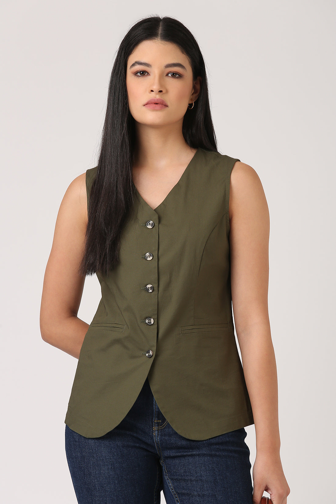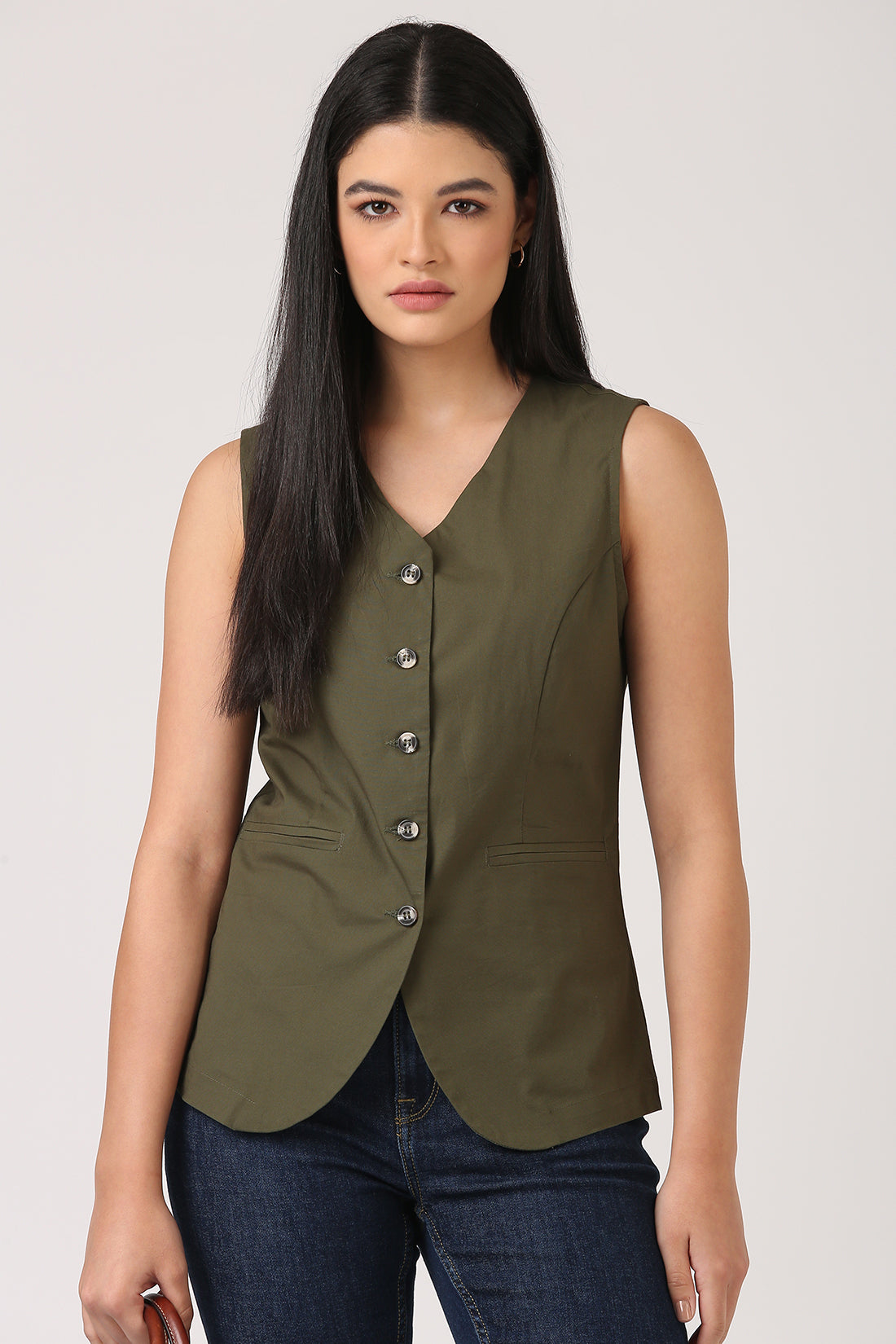 This waistcoat top in heavy-GSM poplin is your all-season power move