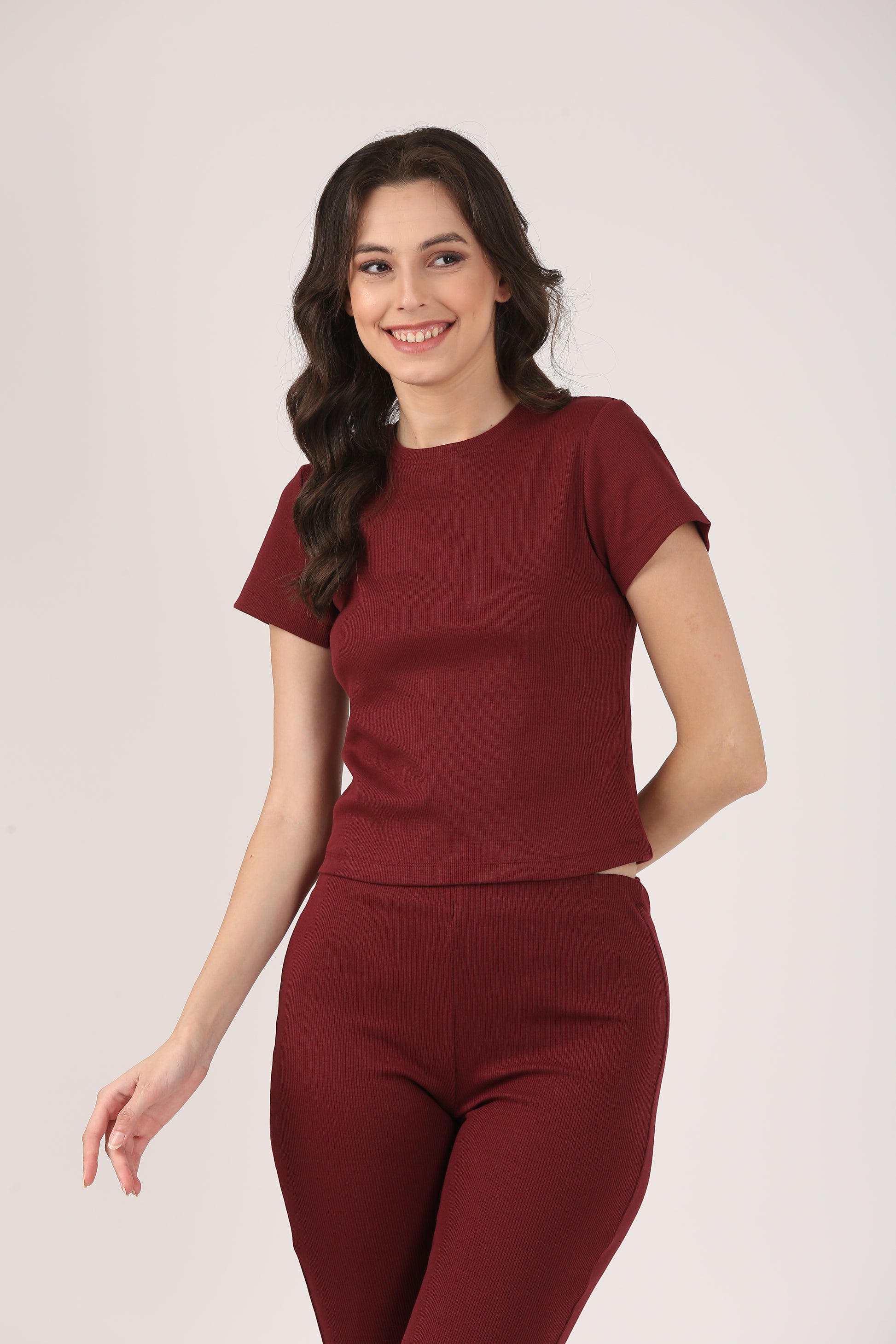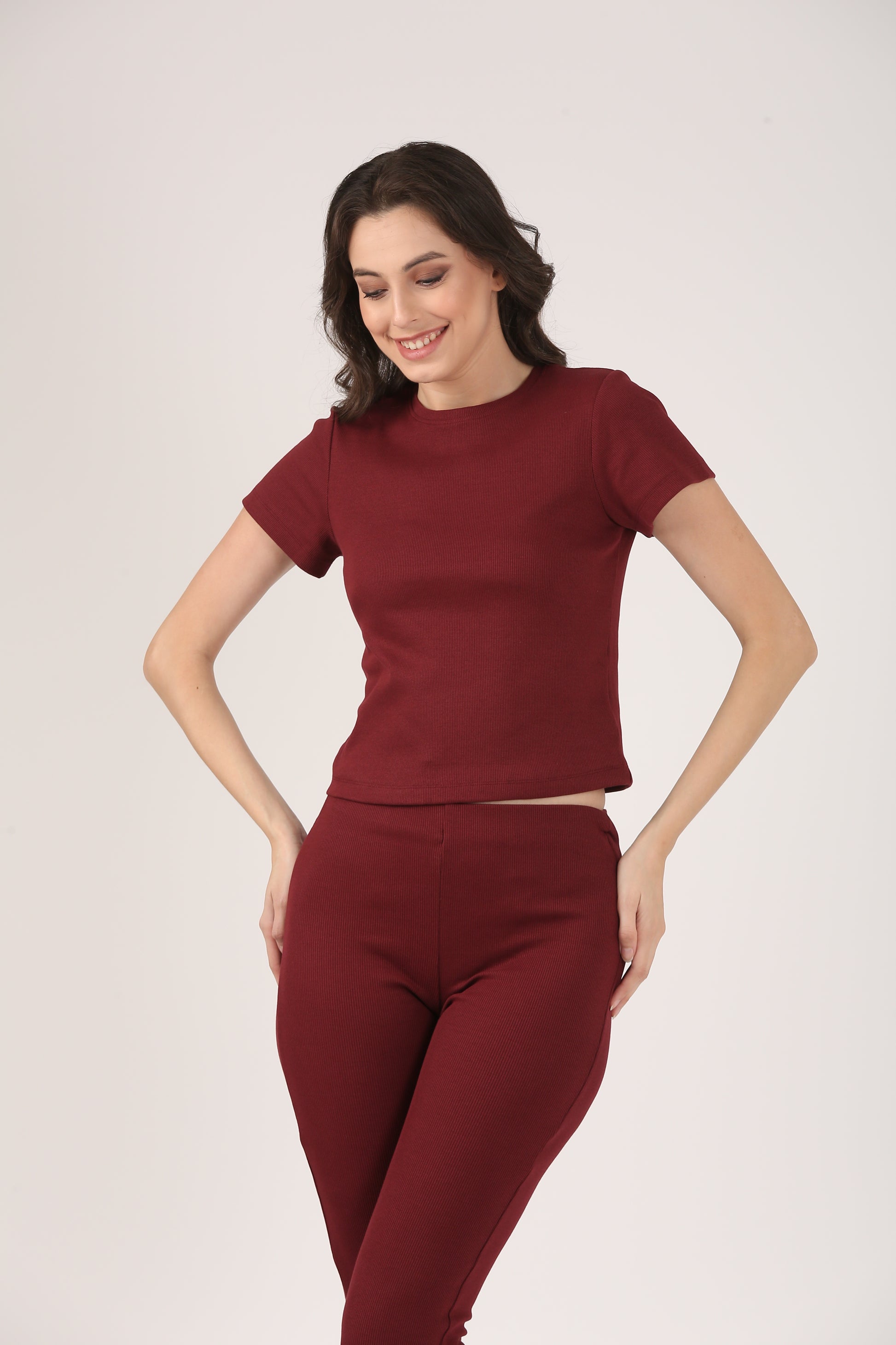 Experience everyday luxury with the Soft Cotton Rib Short Sleeve Wine Top, crafted in our in-house developed 96% cotton, 4% spandex 2x1 rib fabric at a rich 280 GSM weight. From yarn to rack, every detail has been thoughtfully designed to deliver exceptional quality and comfort. Featuring compacted yarns for durability, a gold-finish stretch rib for subtle sheen, and a slim fit silhouette, this top feels both refined and effortlessly wearable. With its short sleeves, high neckline, and straight hem, it’s a versatile essential that transitions seamlessly from day to night.