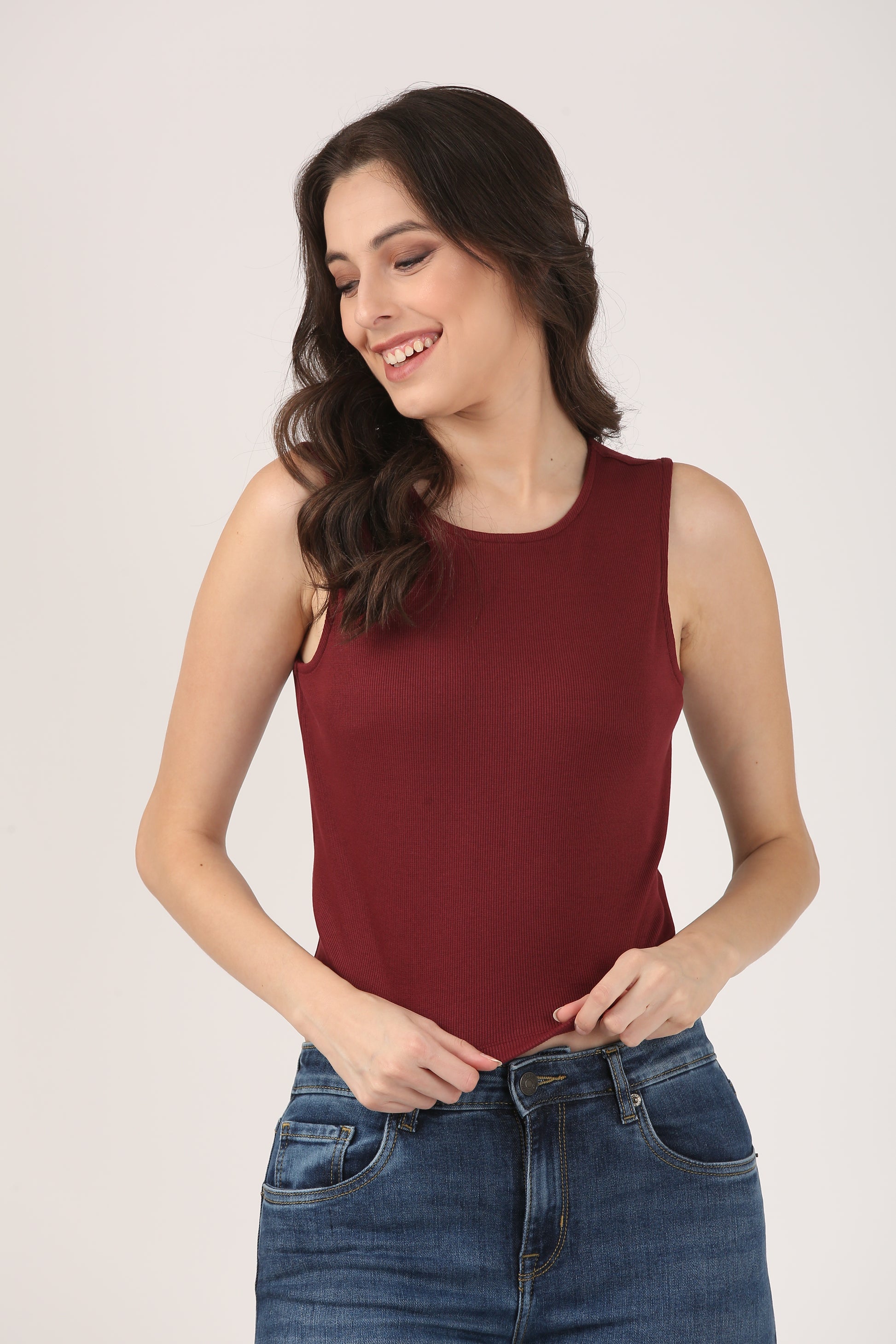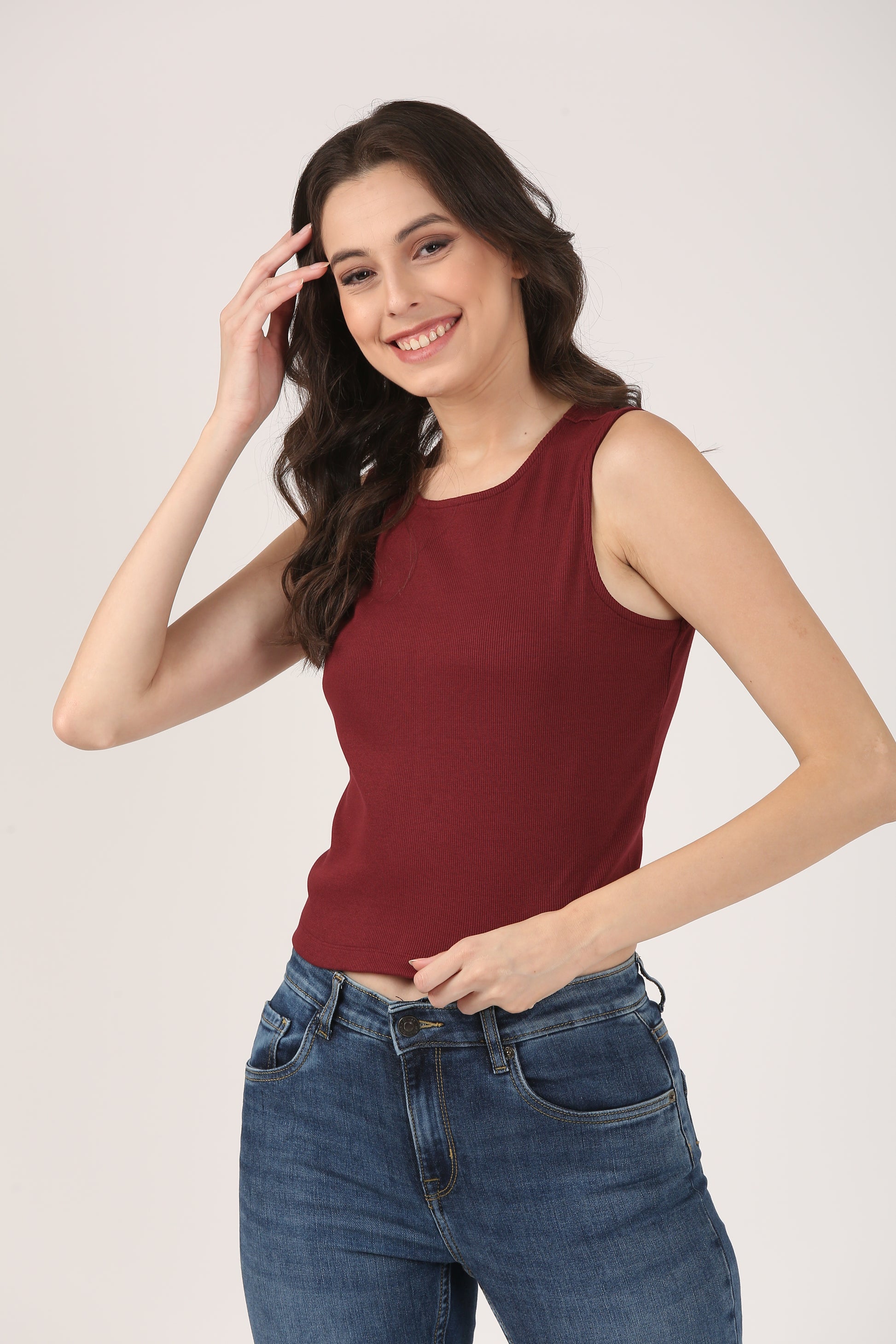 Soft Cotton Rib Sleeveless Wine Top