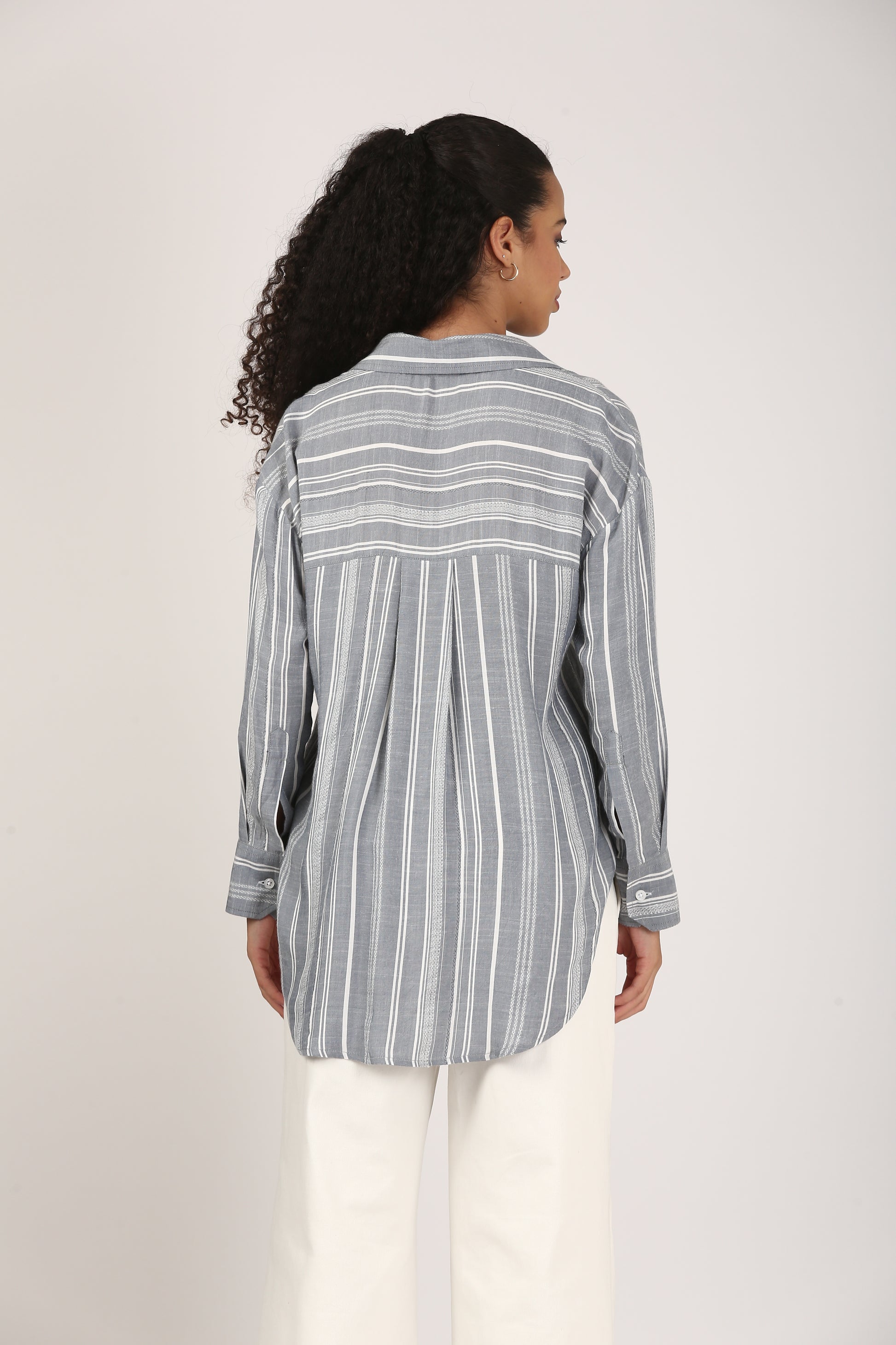 Woven in premium cotton from Erode, the Stripe Popover Shirt is designed with a half-button placket and relaxed silhouette that balances heritage with modern ease. The vertical stripes add quiet definition, while the breathable cotton keeps it effortlessly wearable through the week and beyond.
