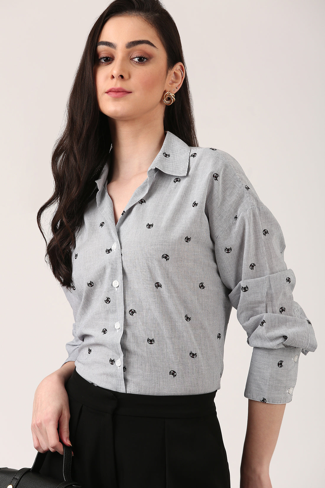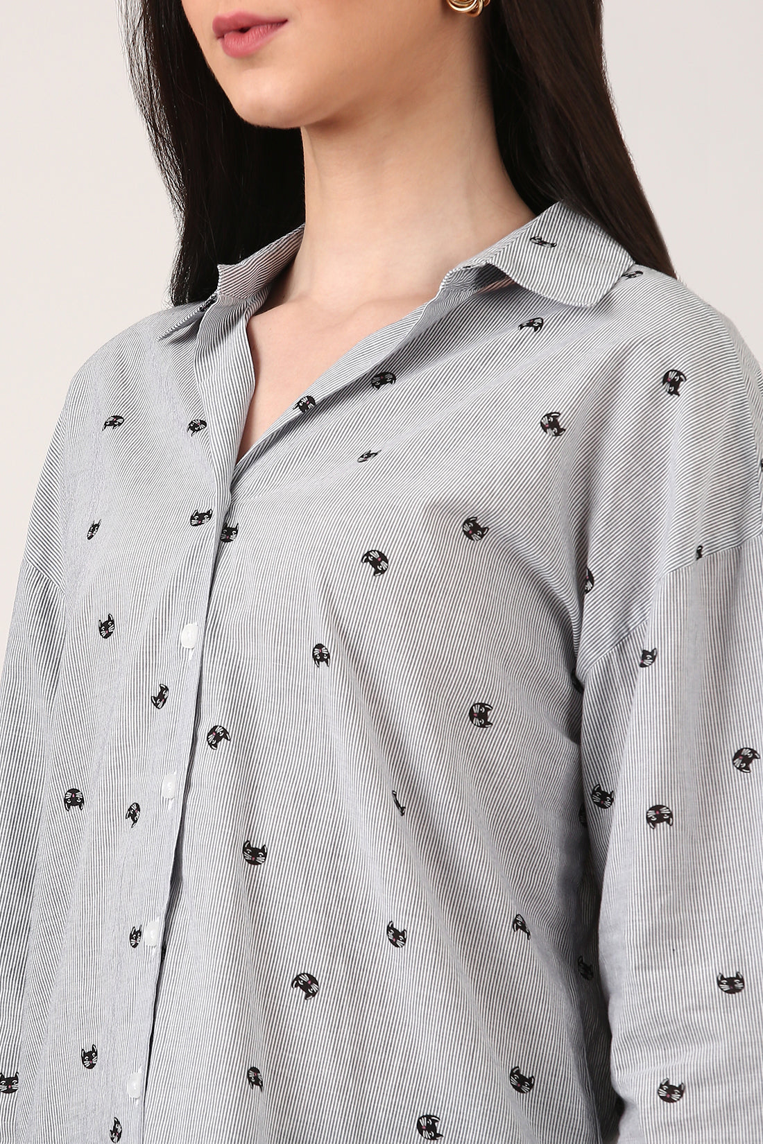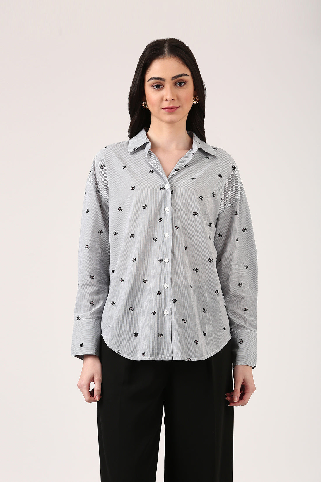 Imagine this: you're on the hunt for a shirt that stands out, something that’s just right. You’ve seen it all—plain tees, basic prints, and those same old stripes. But then... you land here. And bam! Cats! It catches your attention because cats don't give a damn, they are too cool because they do their own thing, never trying too hard, and that’s exactly the vibe you have. About the fabric, the soft cotton feels like a cloud, and the light stripes paired with that cheeky cat print? Pure genius. Seriously, how did you ever live without this in your wardrobe?