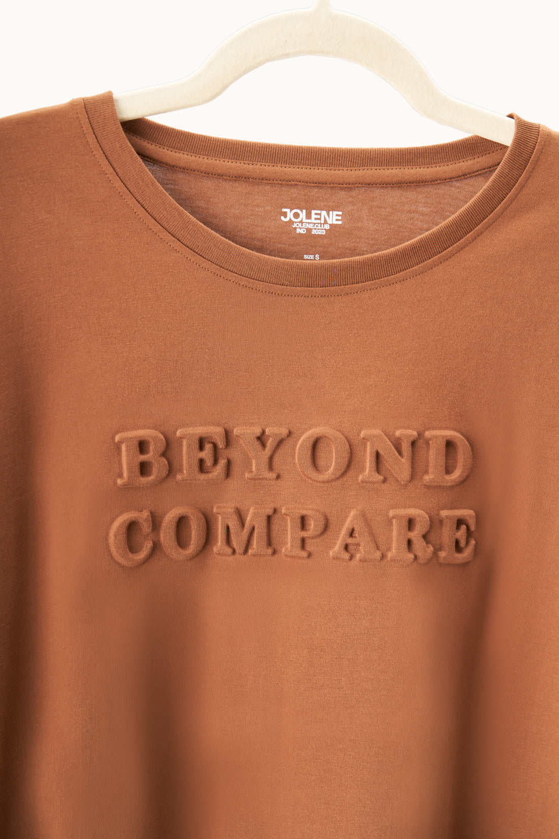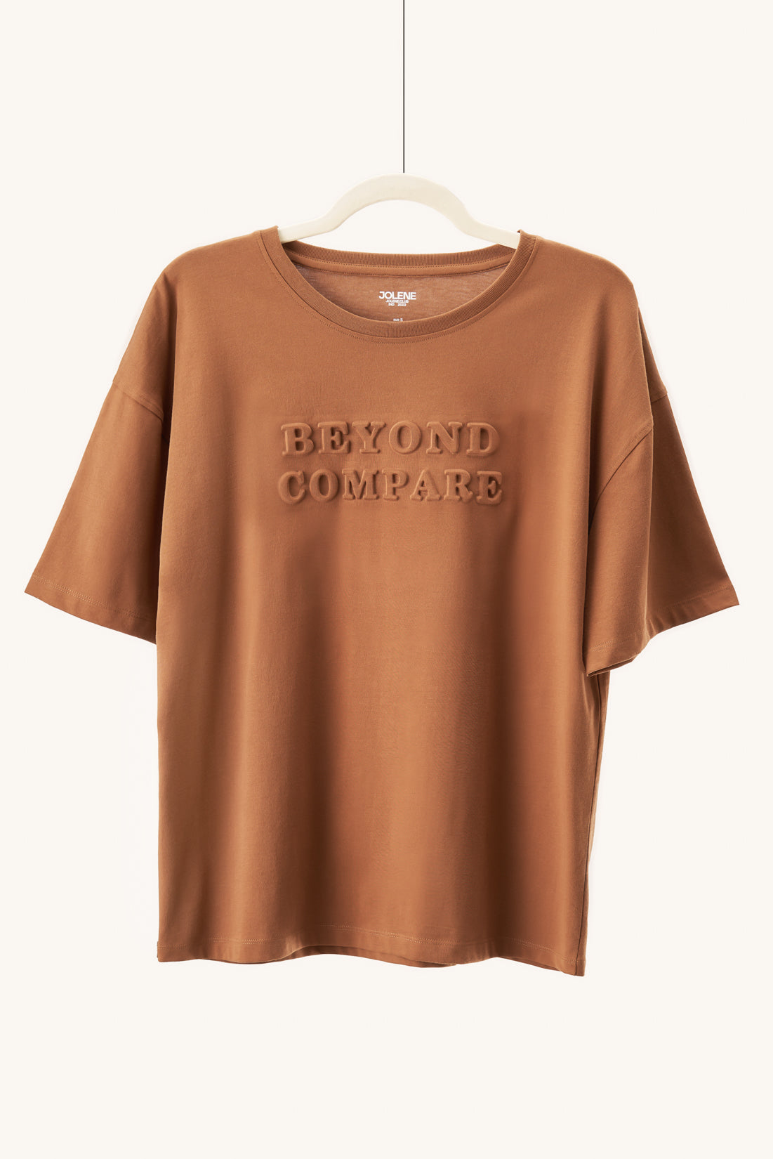 Adorned with our season’s tagline in a delicate emboss, this oversized t-shirt is a go-to choice for all-day comfort.