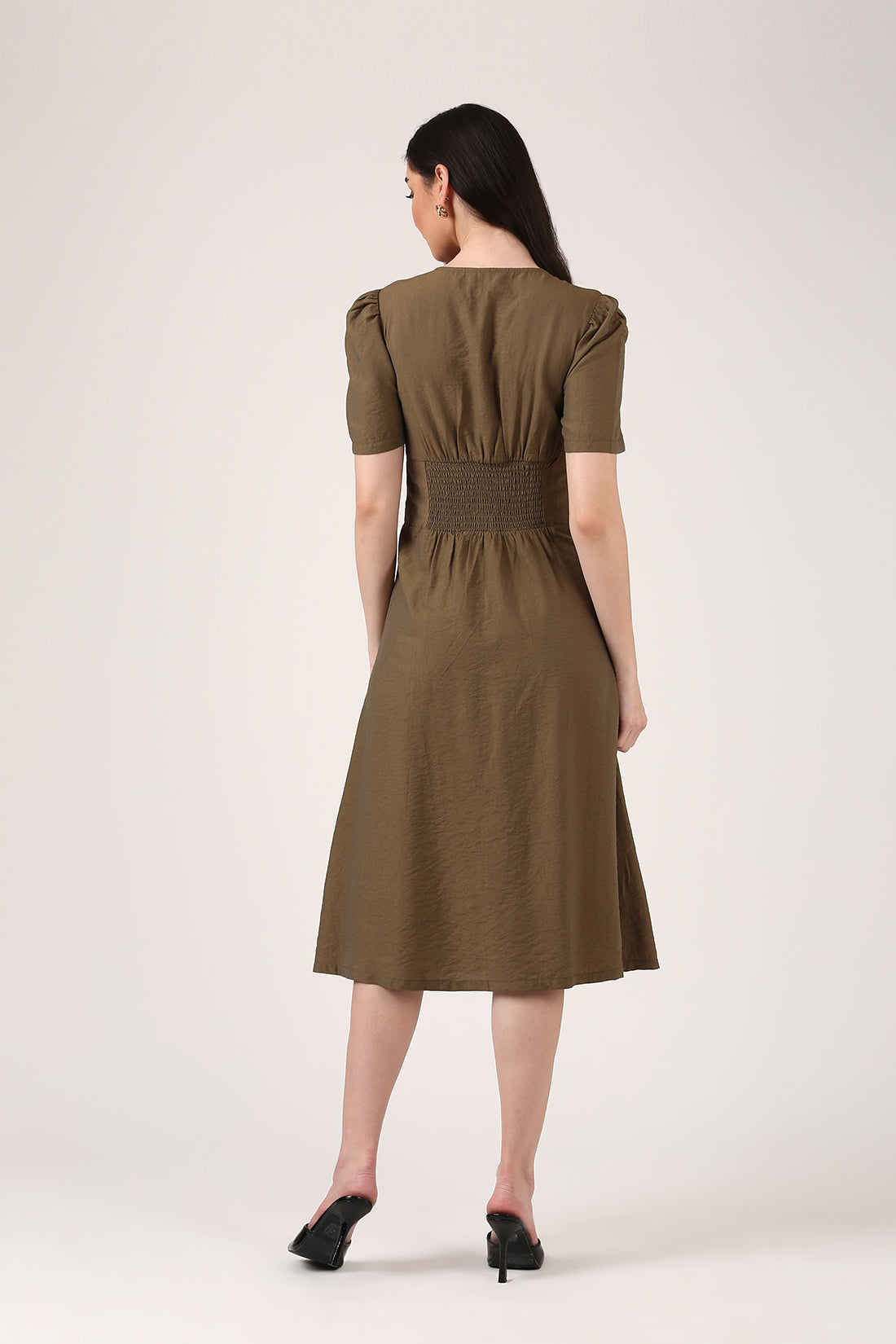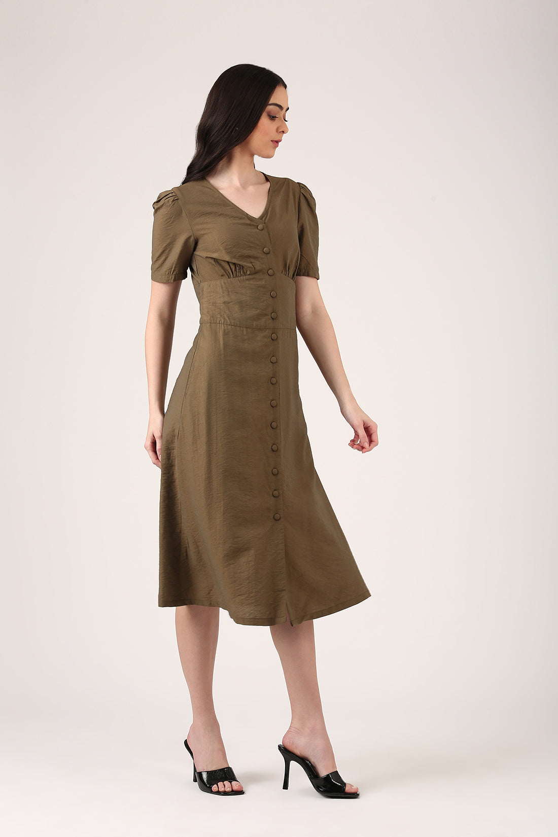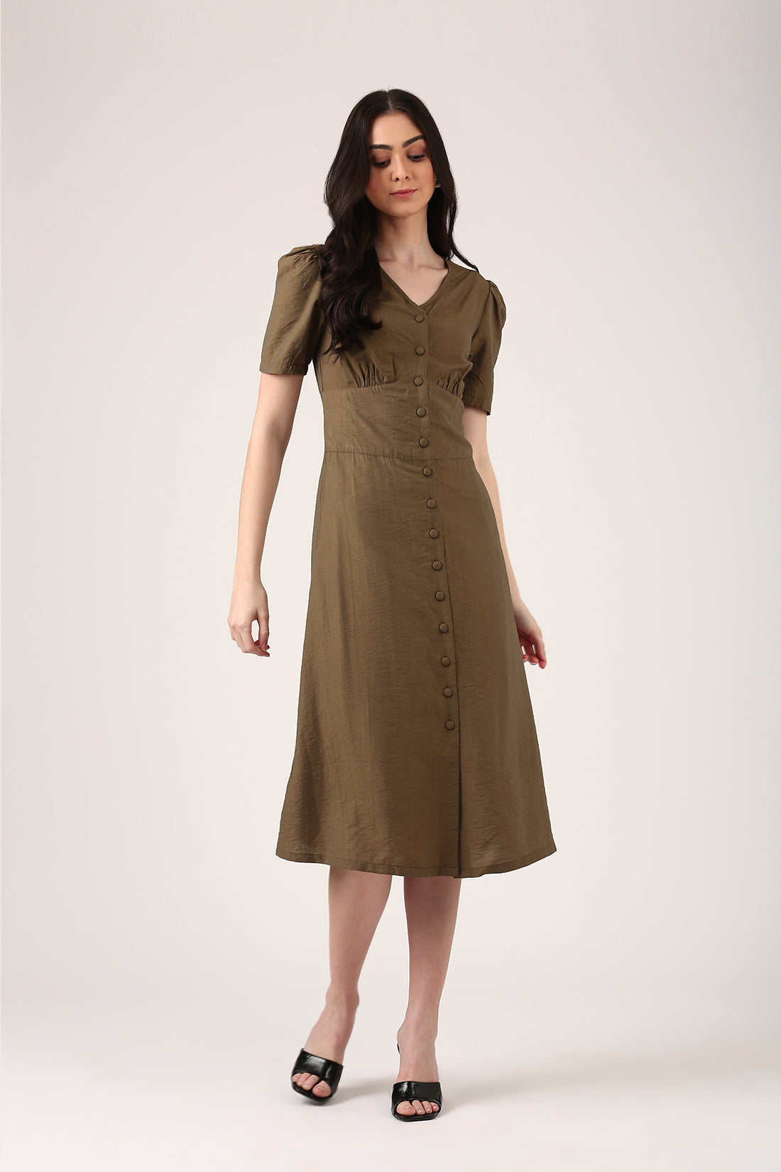 Try the Willow Mist Dress—soft, flowy, and effortlessly chic in a rich olive green. The empire waist cinches just right, while the toned viscose catches the light in the most subtle, stunning way. A dress that feels like poetry in motion.